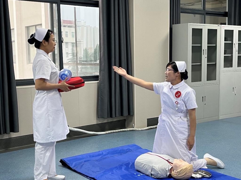 此次比赛共有26名教师参加,随机抽签,两两组队,分为13队参赛。比赛中,每一队都能准确完成意识判断、呼救、摆放体位、胸外心脏按压、开放气道、人工通气等步骤,动作娴熟、配合默契,现场气氛紧张激烈。
