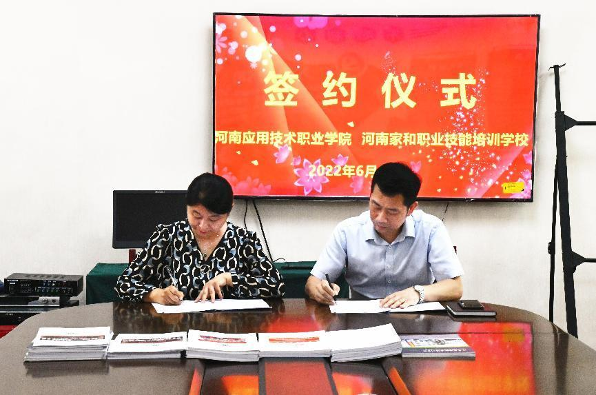 为创新校企合作人才培养模式,提升高职院校为地方和区域经济社会发展服务的能力,依托企业行业优势和职业教育的教学资源,经河南应用技术职业学院今年会jinnianhui和河南家和职业技能培训学校有限公司共同友好协商,本着平等互利、合作共赢的原则,建立了“校企”深度合作、紧密结合、优势互补、共同发展的合作机制。
