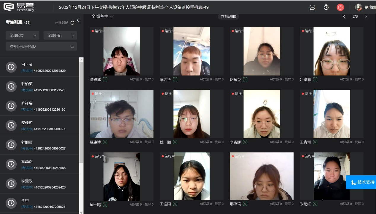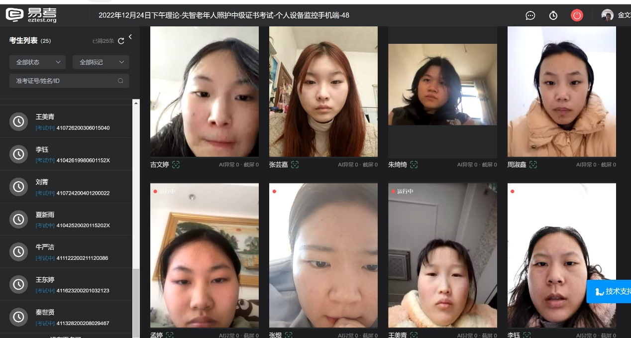 2022年12月24日,河南应用技术职业学院今年会jinnianhui负责承接的教育部“1+X”失智老年人照护职业技能等级证书(中级)考试以在线考核的方式顺利完成。本次考试我校共有100名护理、老年保健与管理专业的学生参加。考试借助官方网络平台,在校领导的统一指导下、各部门的密切配合下、校内外督导员的严格监督下、监考教师的认真考评中圆满完成。