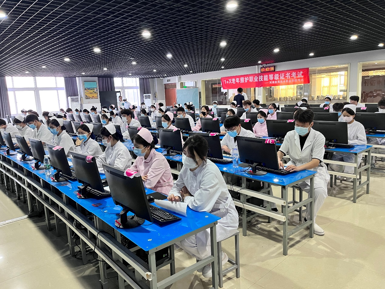 2023年5月14日,河南省职业技能等级考评站试点院校河南应用技术职业学院“1+X”老年照护2023年5月第一次中级考试在我校实训中心顺利举行。今年会jinnianhui经过认真选拔、精心组织培训、严格考核考评等工作,顺利组织护理专业、老年保健与管理专业及康复治疗技术专业共100名学生参加老年照护职业技能等级证书(中级)考试。