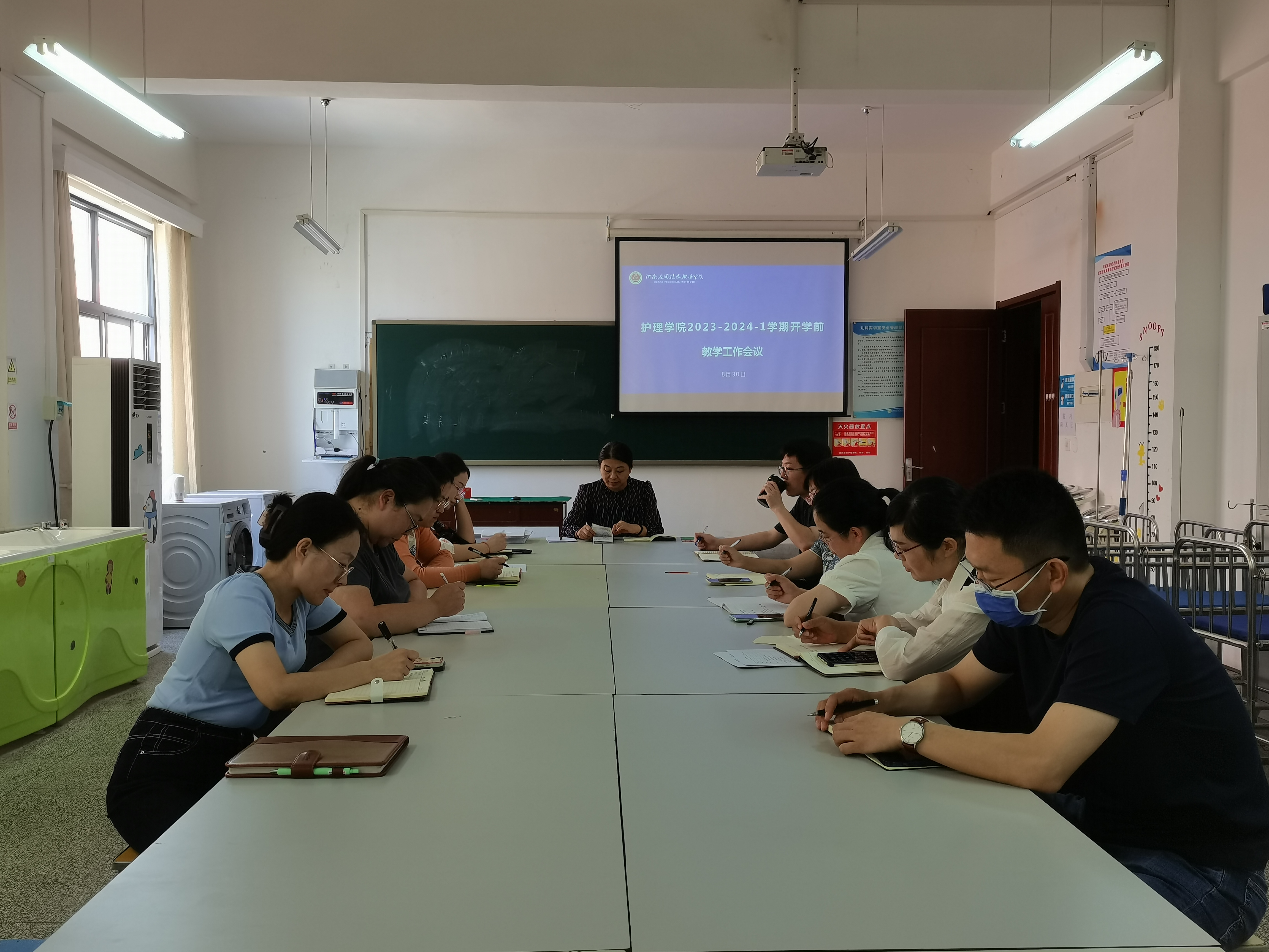 会上,院长王风云充分肯定了我院全体教师的暑期工作,要求大家做好开学前准备工作并传达部署新学期重点工作。副院长温晓丽向大家强调了实验室检查及新、老教研室主任和实训室管理员的交接工作。教务办主任窦纪梁,逐条明确了各项开学前准备任务的上交要求和时间。老师们对相关工作进行了梳理交流并完成了工作对接。