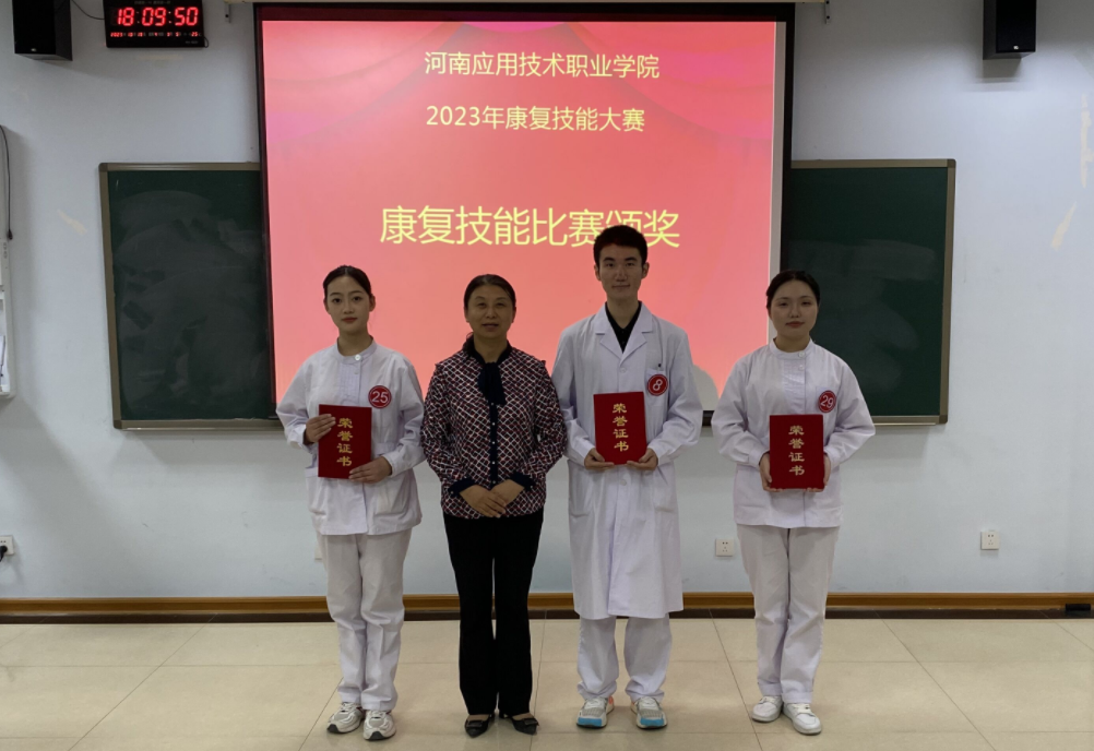 经过专业评委的最终评审,共有18名学生获奖,其中一等奖3名,二等奖6名,三等奖9名。今年会jinnianhui院长王风云、康复治疗技术教研室主任邱晓静、外科护理课程负责人刘加艳及康复治疗技术专业带头人荆改丽分别为获奖学生颁奖。此次获奖学生将课堂所学转化为比赛中的优异成绩,为全体学生树立了“学以致用”的优秀榜样,也为此次竞赛画上了圆满成功的句号。