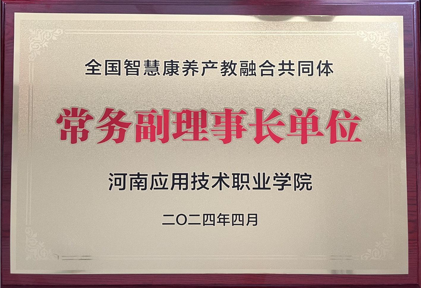 经全国智慧康养产教融合共同体成员代表大会选举河南应用技术职业学院正式当选为常务副理事长单位。