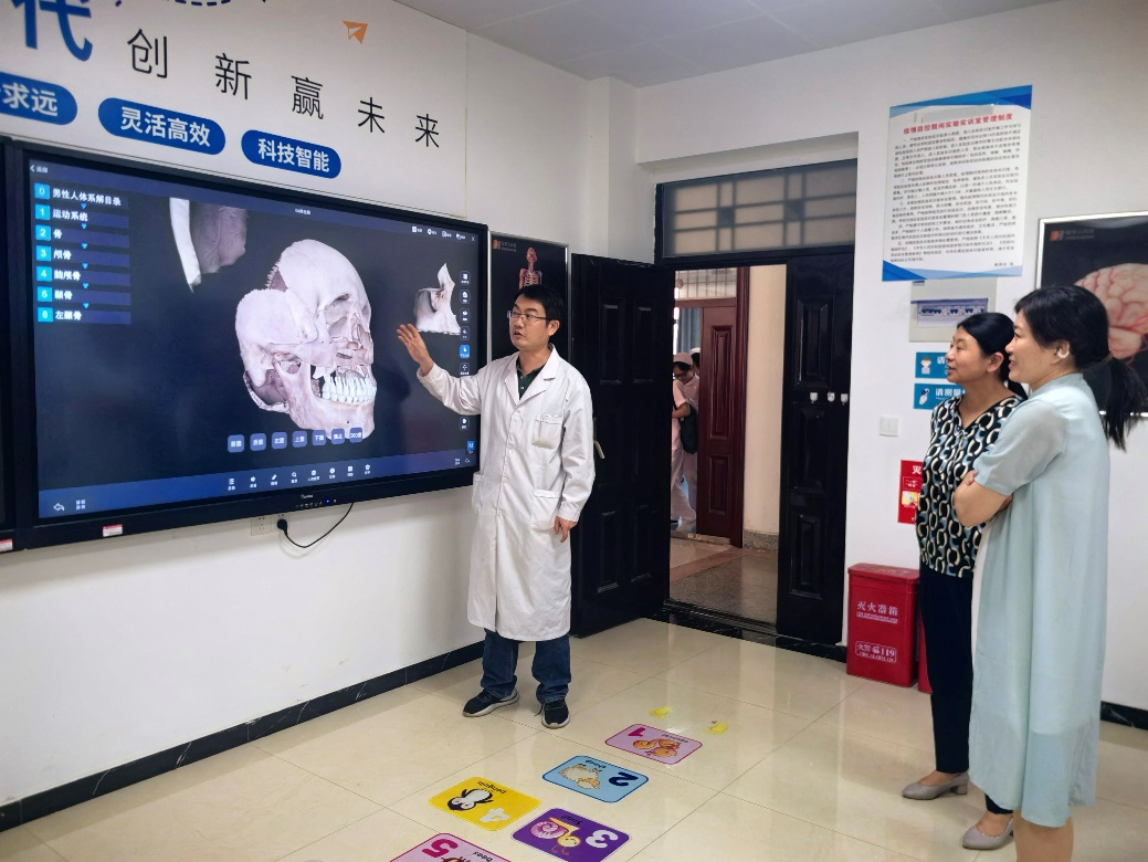 面试结束后,校院双方还就人才培养、教学实习管理等进行了深入交谈。在王风云院长的陪同下,关锐主任一行参观了学校校园环境、医护实训楼等场所。王院长指出,为了给实习生搭建更好的就业平台,学院在拓展实习基地、推进就业等方面开展了大量工作,取得了良好的成效。
