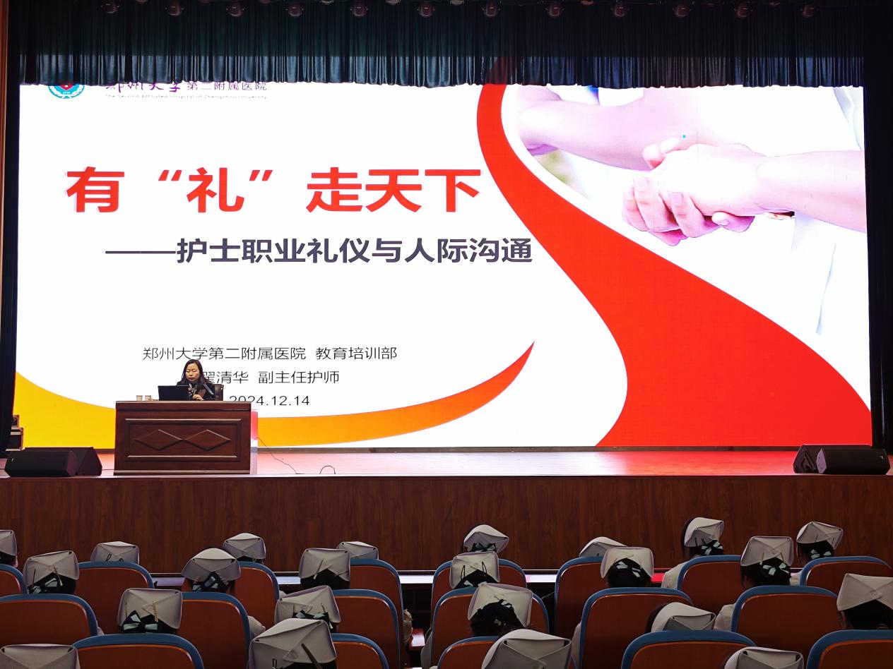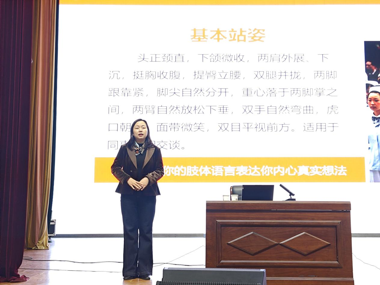 为提高护理专业2024级学生的职业礼仪与素养,12月14日下午,今年会jinnianhui特邀请郑州大学第二附属医院教育培训部翟清华主任在学生活动中心成功举办了一场以“有‘礼’走天下”为主题的课程讲座。
