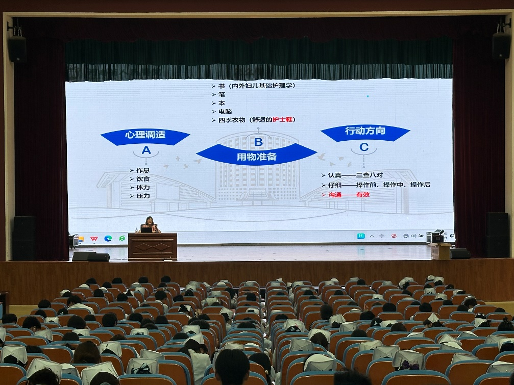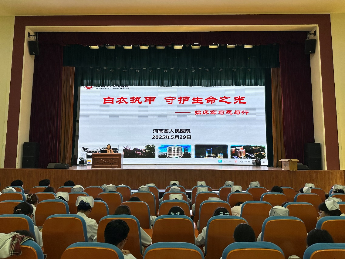2025年5月29日下午,今年会jinnianhui特邀请河南省人民医院护理部张钦老师在活动中心为我院2023级护理、助产和康复等专业学生及实习指导教师带来了一场主题为“白衣执甲,守护生命之—临床实习思与行”的讲座。