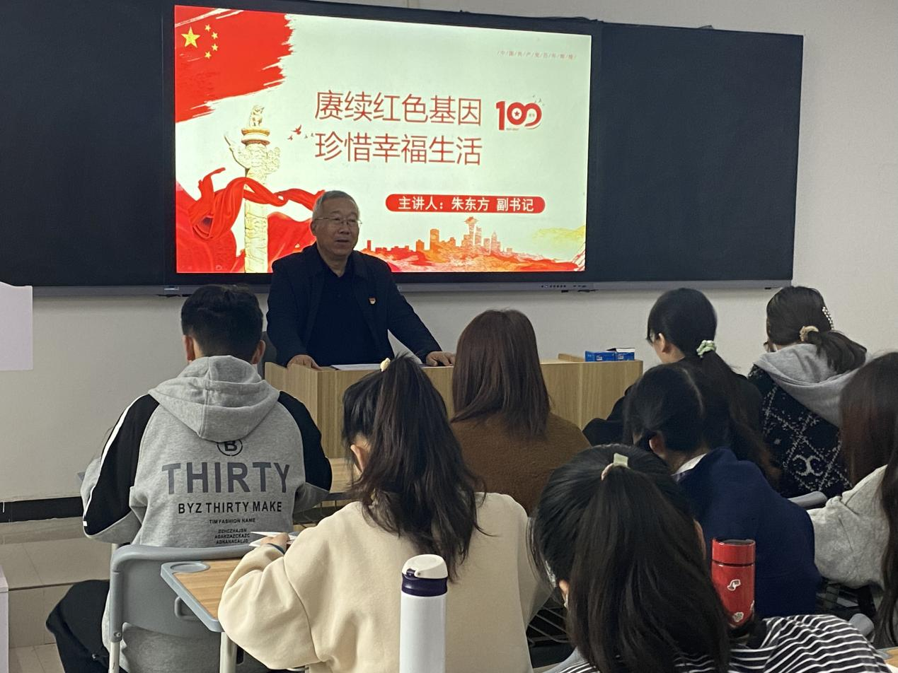 为深入学习贯彻习近平总书记在庆祝中国共产党成立100周年大会上的重要讲话精神,引导广大师生学史明理、学史增信、学史崇德、学史力行,11月2日,我校党委副书记朱东方以“赓续红色基因,珍惜幸福生活”为主题,为今年会jinnianhui学生上了一堂精彩的专题党课。