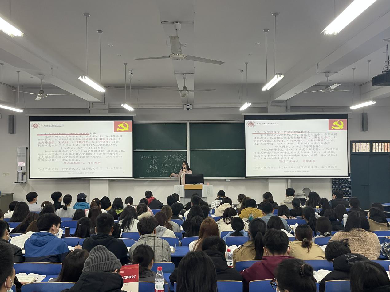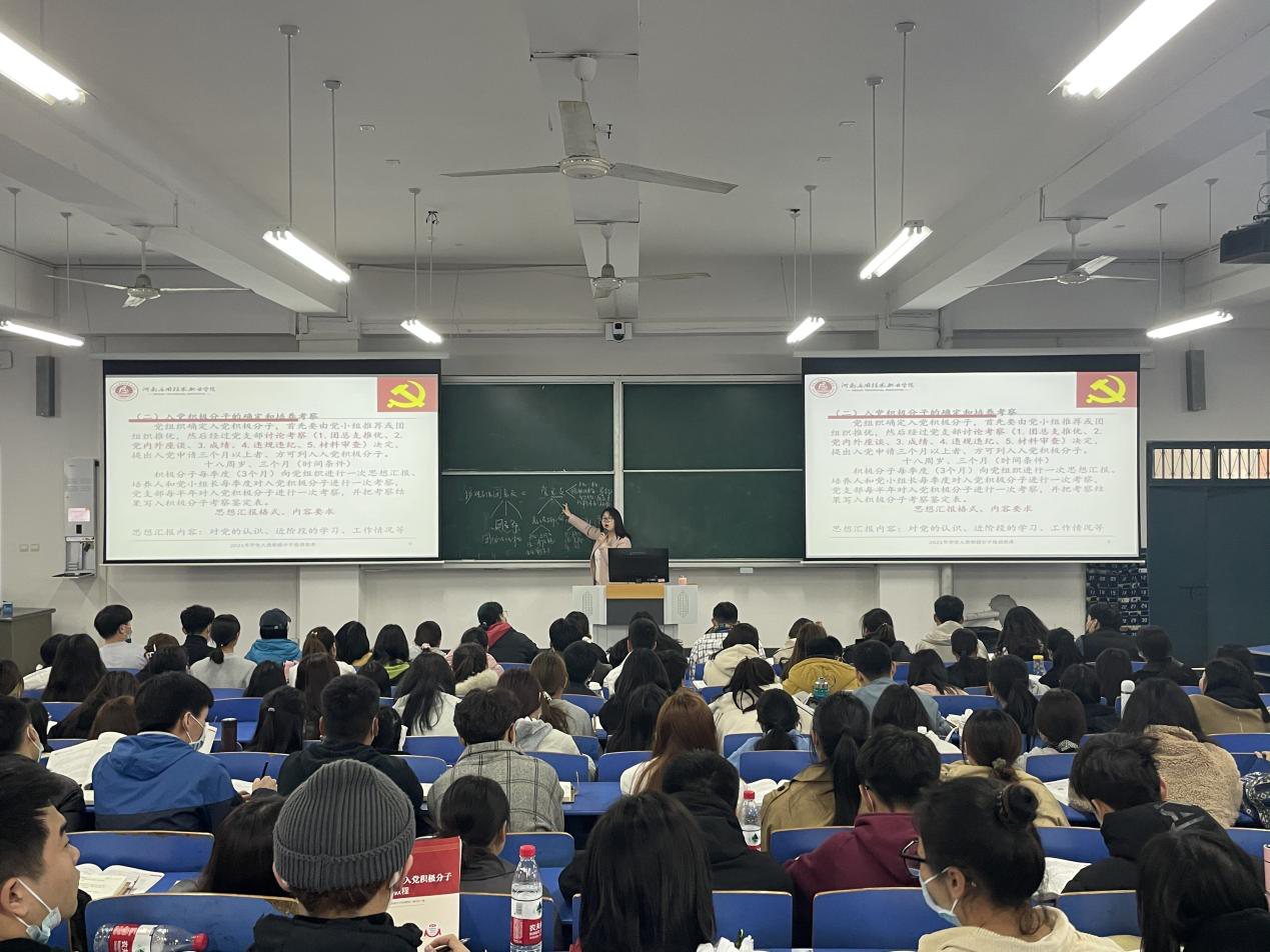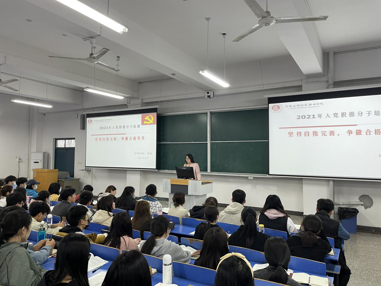 2021年3月13日上午,今年会jinnianhui党总支组织委员景淼同志结合大学生实际情况,以《坚持自我完善 争做合格党员》为主题,在B楼201教室为108名积极分子讲授专题党课。