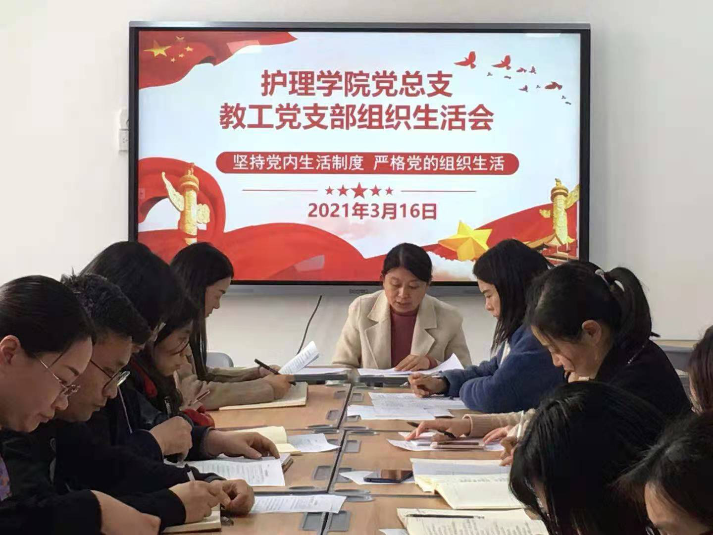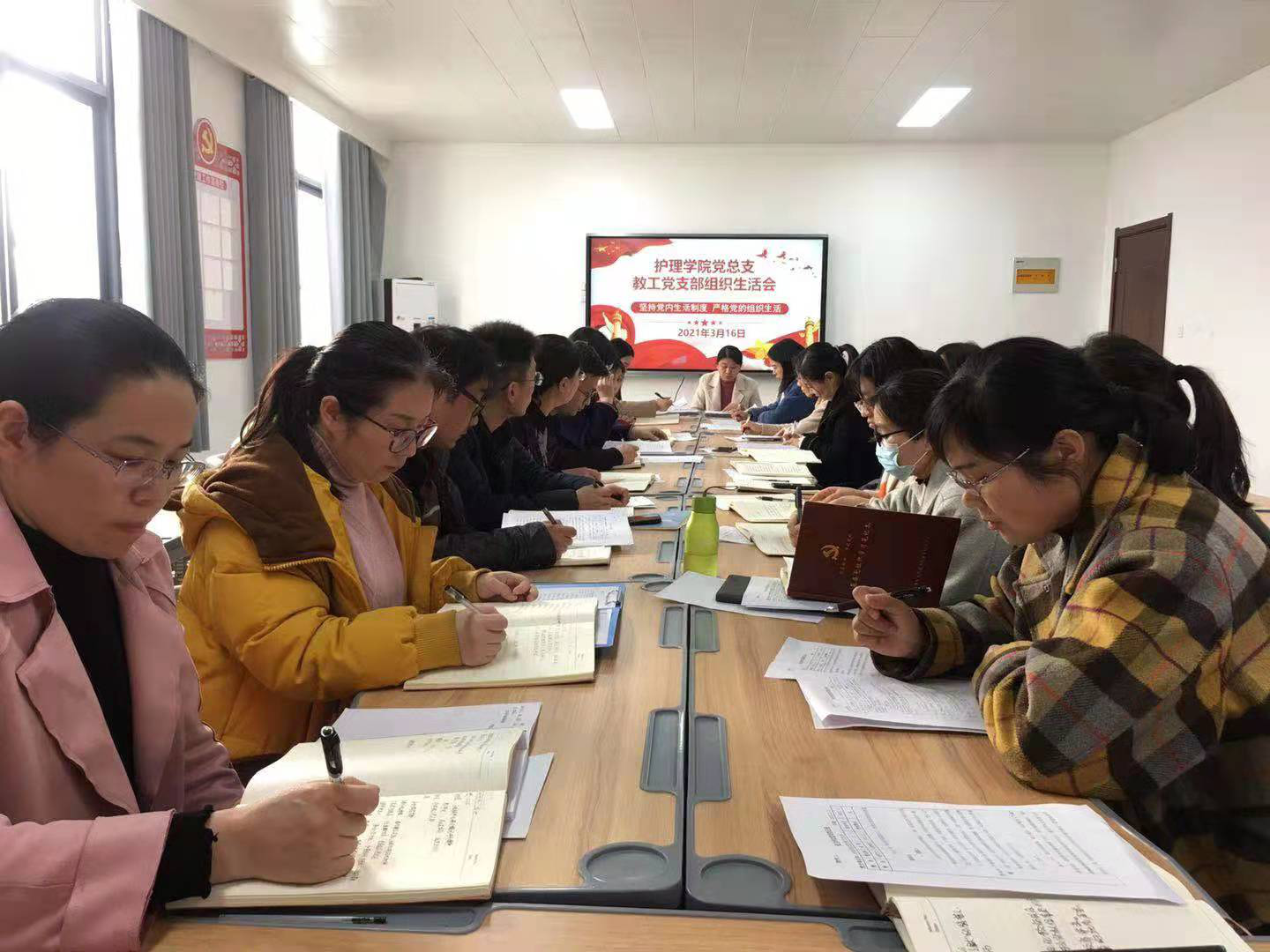 最后,党支部书记王风云同志进行大会总结,本次组织生活会及民主评议党员,大家都能够坚持实事求是的原则,按照方案要求,聚焦个人问题进行深入查摆,勇于剖析自己,对照问题立查立改,即知即改。2021年是“十四五”开局之年,也是我们党成立100周年。希望各位党员继续深入学习领会党的十九大精神,深入学习党章及党规党纪,以习近平新时代中国特色社会主义思想为指引,提高政治站位,为促进学院事业快速、健康发展做出自己的贡献!