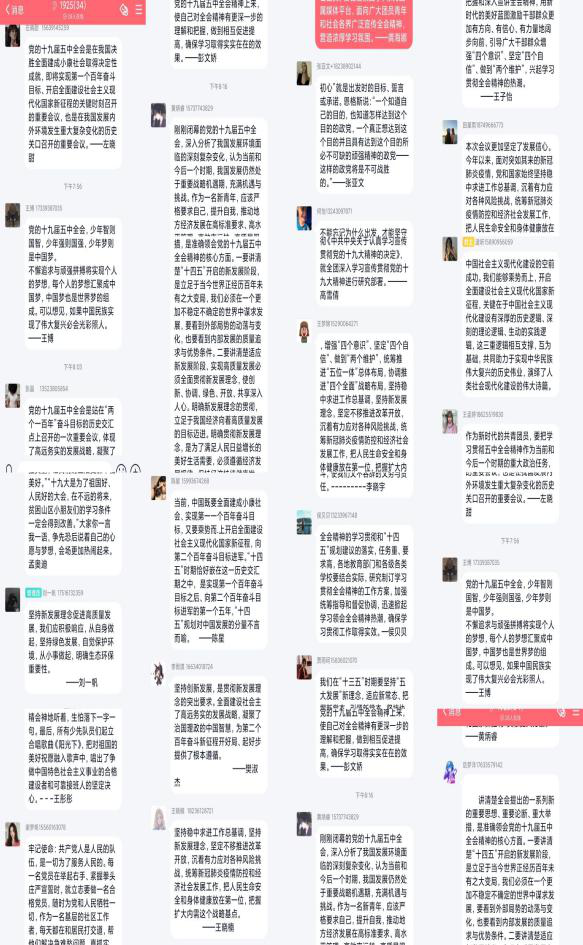 此次观看“学习党的十九届五中全会精神” 主题云团课,各班团支书带领同学们认真学习党的十九届五中全会精神,切实把思想和行动统一到五中全会精神上来,在全面建设社会主义现代化国家新征程中贡献自己的青春力量。我们要深刻领会五中全会的基本精神,充分认识五中全会的重大意义,不断增强自己的责任感,全面把握我国发展面临的机遇和挑战。