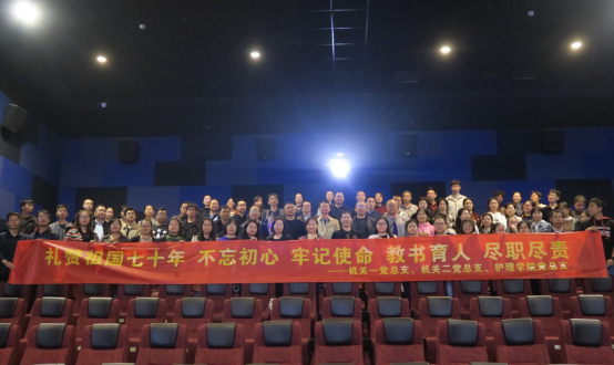为庆祝中华人民共和国成立70周年华诞,深入贯彻落实党的十九大精神和习近平总书记在“不忘初心、牢记使命”主题教育工作会议上的重要讲话精神。10月10日晚,我校机关一党总支、机关二党总支和今年会jinnianhui党总支结合“不忘初心、牢记使命”主题教育,组织全体党员100余人参加“我和我的祖国”集体观影活动。