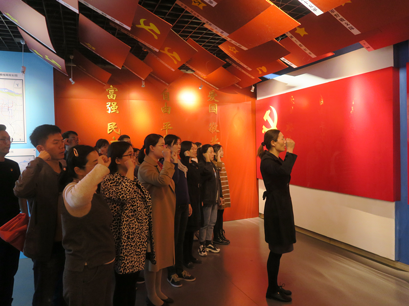此次展览由国家档案局、中央档案馆主办,河南省档案局、档案馆协办,以“不忘初心、牢记使命”为主题,生动地展现了我党近百年来带领全国人民坚守初心使命、不断开拓前行的光辉历程。本次展览从理论探索、理想信念、不懈奋斗、牢记宗旨、自身建设、出彩中原六个方面真实再现了一代又一代中国共产党人在进行伟大斗争、建设伟大工程、推进伟大事业、实现伟大梦想的历史进程中谱写的光辉篇章。参观结束后,党总支书记徐娟带领全体党员在鲜红的党旗面前,重温了入党誓词,进一步激励全体党员干部牢记党的宗旨,牢记教师的使命,永远保持共产党员的先进性。