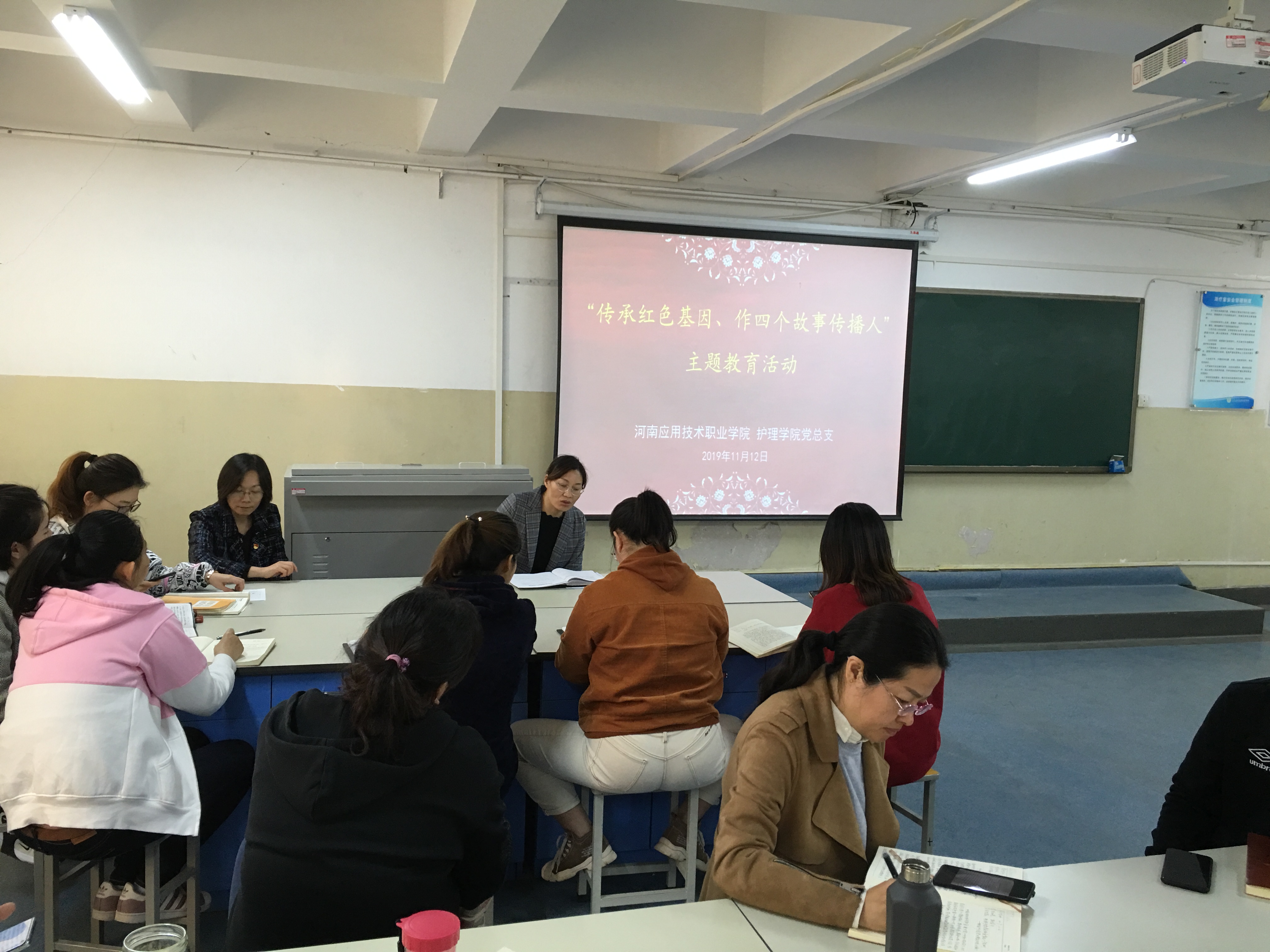 为深入贯彻落实习近平总书记视察河南重要讲话精神,推进我校第二批“不忘初心、牢记使命”主题教育深入开展,11月11日中午,今年会jinnianhui党总支组织全体教师在D207开展了“传承红色基因、讲好四个故事”主题教育活动。通过讲好党的故事、革命的故事、根据地的故事、英雄和烈士的故事,教育引导广大党员深入学习党史、新中国史,不断巩固升华理想信念。