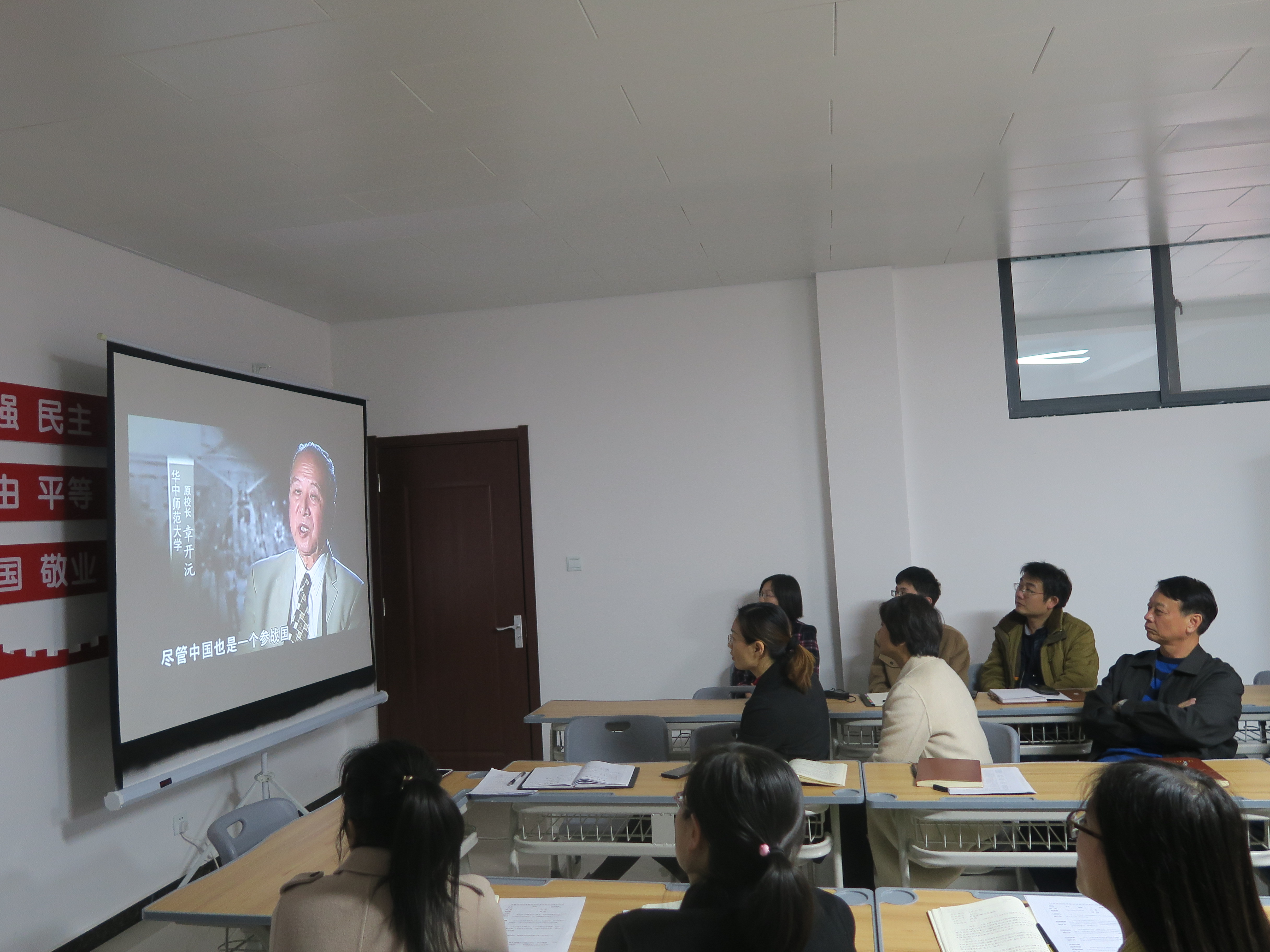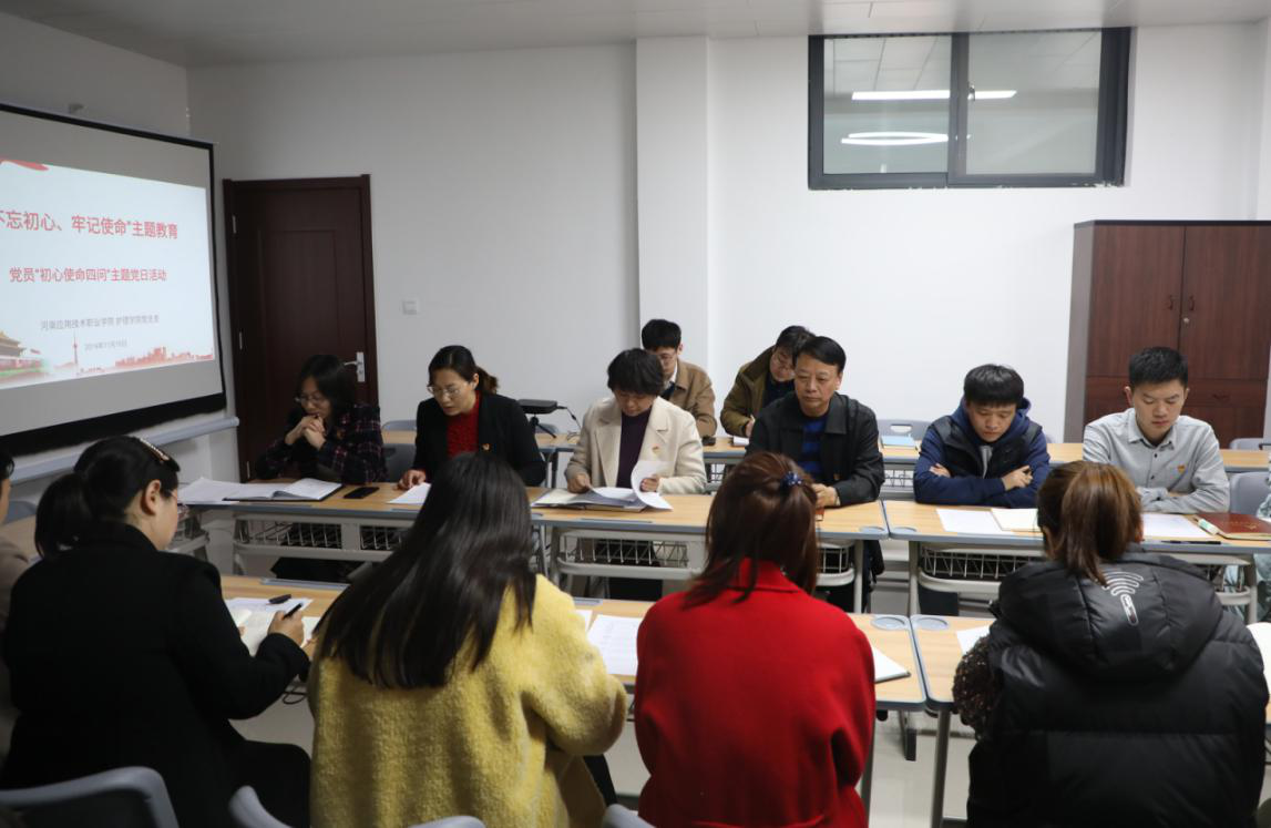 为贯彻落实“不忘初心、牢记使命”主题教育,紧扣主题教育“守初心、担使命,找差距、抓落实”总要求,今年会jinnianhui党总支教工党支部于11月19日在党员活动室组织开展“初心使命四问”主题党日活动。学校党委书记秦书君同志作为普通党员身份参加此次活动。