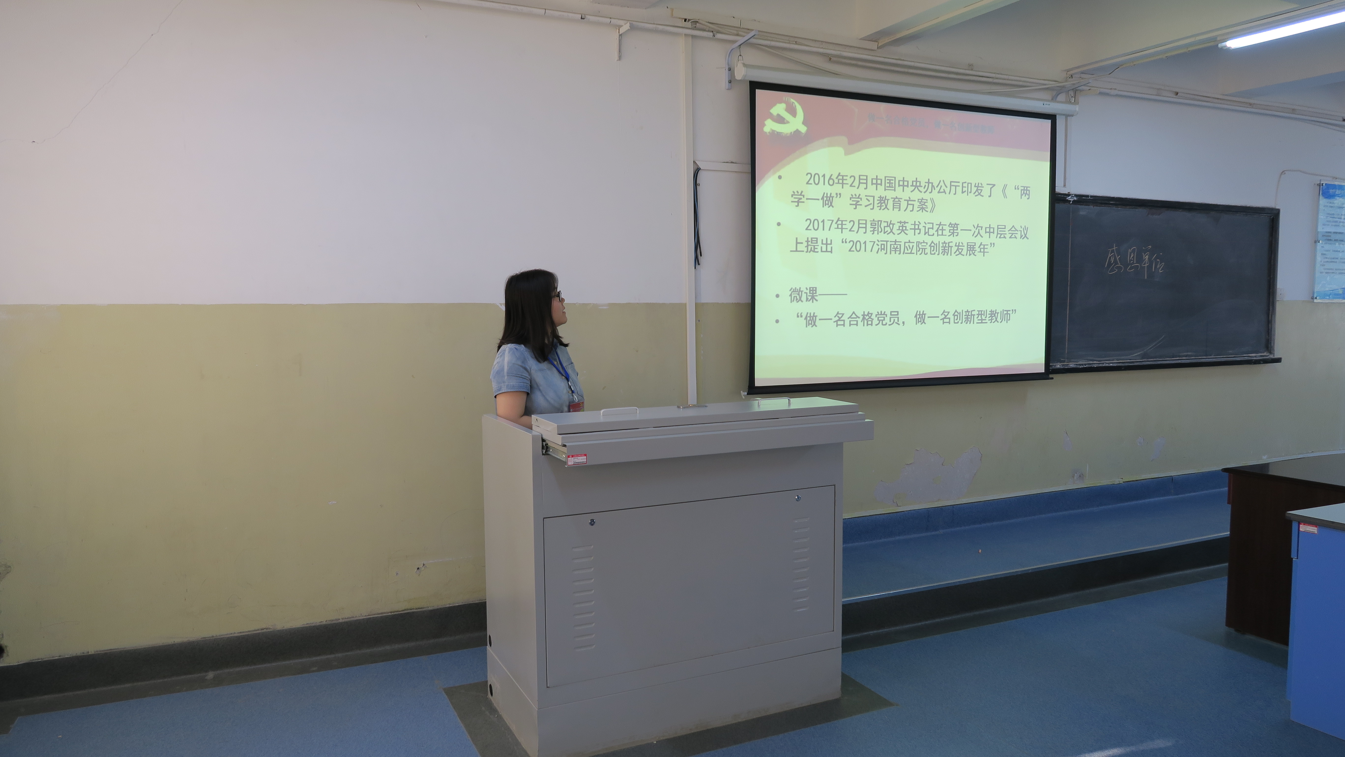 2016年2月中共中央办公厅发出《两学一做》学习教育方案,各地区各部门认真贯彻执行;2017年2月郭改英书记在第一次中层会议上提出2017为我校创新发展年,景淼同志以“做合格党员,做创新型教师”为授课主题。