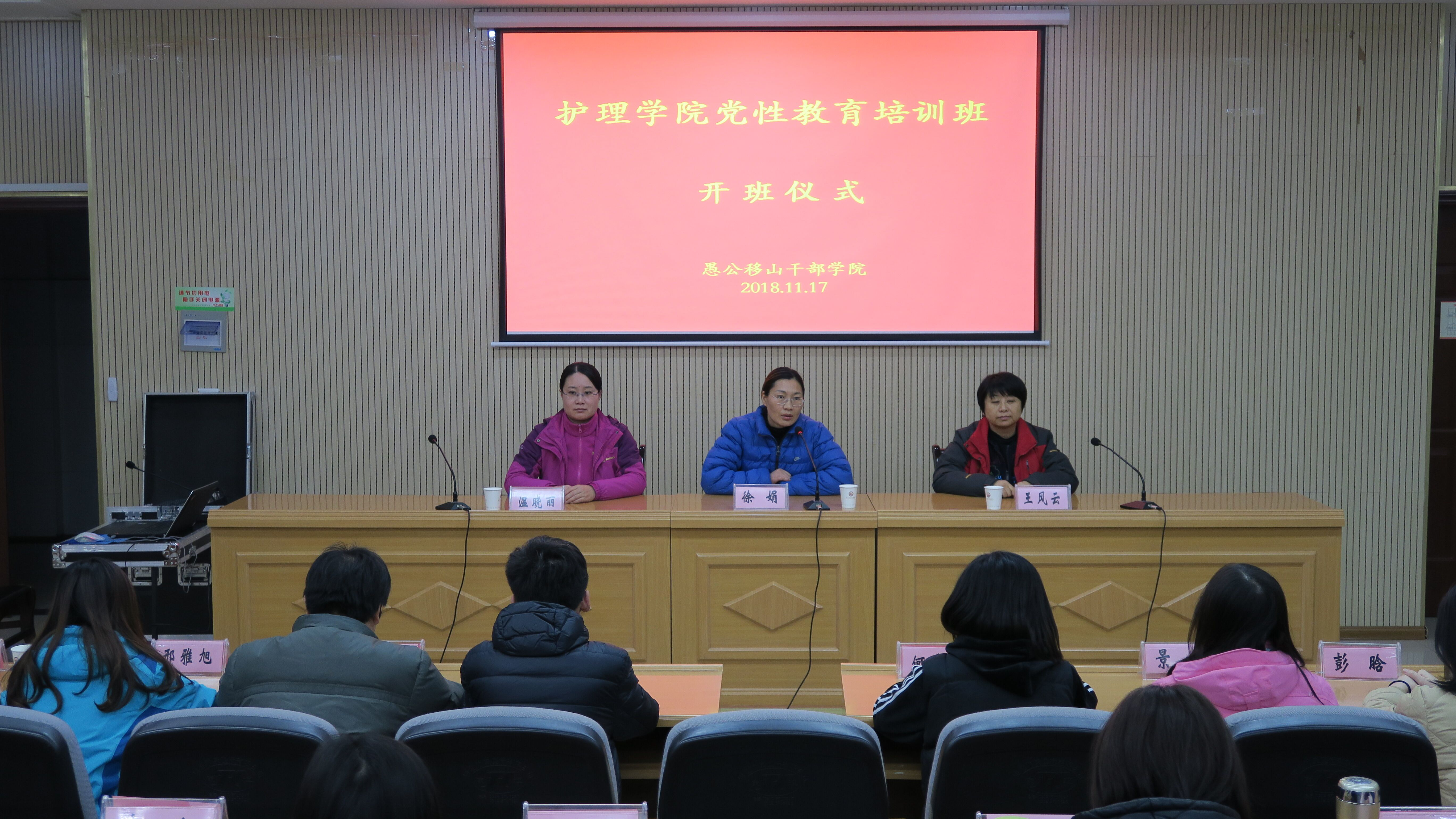 开班仪式上,徐娟书记对本次培训活动作了开班动员讲话,在讲话中要求大家,一是统一思想,增强学习习近平新时代中国特色社会主义思想和党的十九大精神的行动自觉;二是发扬愚公移山精神,推动学院工作再上新台阶;三是严格纪律,圆满完成培训的各项任务。
