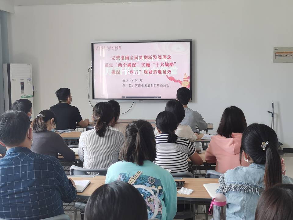 根据学校《关于做好“能力作风建设年”活动之党员进党校学习“十大战略”的通知》要求,今年会jinnianhui党总支于4月21日下午在A515党员活动室开展主题党日活动,组织学工支部及教工支部的全体党员教师通过河南干部网络学院集中观看学习由原省发改委党组书记、主任何雄主讲的《完整准确全面贯彻新发展理念,锚定“两个确保”,实施“十大战略”,确保“十四五”规划落地见效》。