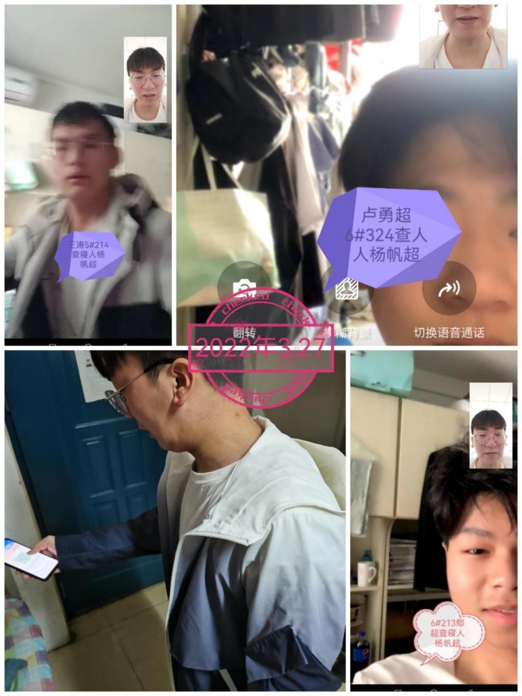 四、每日督促学生钉钉打卡之外,周末辅导员、班主任进行随机视频直播抽查。