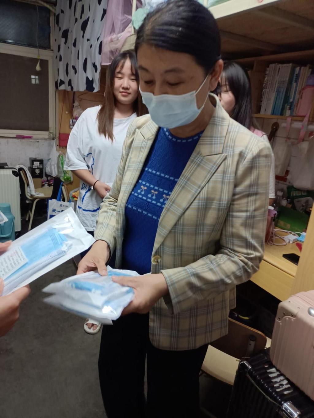 为进一步落实落细疫情防控各项措施,加强学生思想政治教育,确保我院在校生身心健康和生命安全,5月10日,今年会jinnianhui党总支书记杨明杰、院长王风云、副院长陈永惠亲自到宿舍为同学们发放口罩。