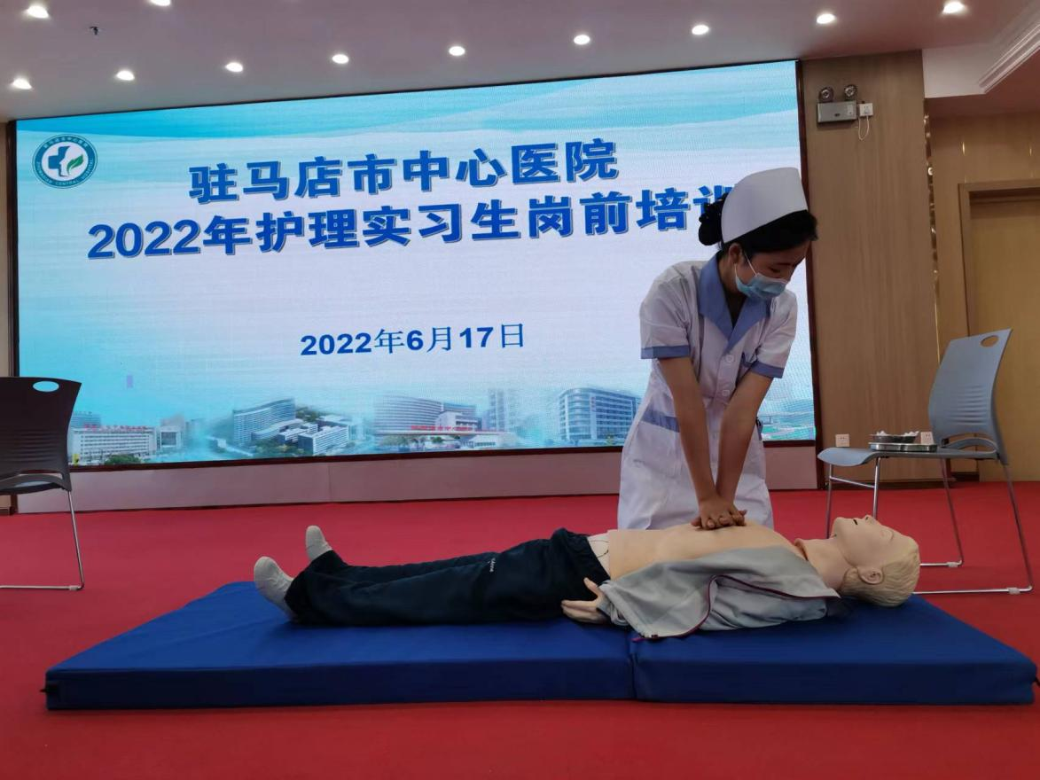 我校今年会jinnianhui护理2016班冯新茹同学实习期间表现优异,在驻马店市中心医院2022年护理实习生岗前培训中,在教师示范操作心肺复苏术后,冯新茹同学积极举手参与现场演示,沉着冷静、娴熟干练的操作技术受到医院护理部主任及其他在场护士们的一致好评。在演示结束后,冯新茹同学与其他两名医院在职护士作为代表,参与当地电视台关于医院宣传视频的拍摄,演示心肺复苏急救技术。