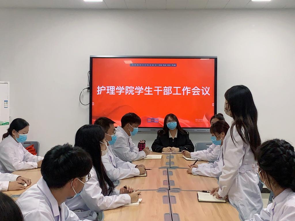 会议伊始,各部门干部成员对自己近期的工作进行了总结汇报,景淼老师对各部门近期开展的工作提出表扬,强调学生干部队伍是学生工作的中坚力量,大家要认真完成学院布置的各项工作,全心全意为同学们服务;同时向学生干部的工作提出四个要求:一是明确指出学生要以学习为首要任务,在学习好自身专业技能的同时,处理好工作和生活之间的关系;二是学生干部要做到以身作则,时刻谨记学生干部身份,树立正直形象,在各个方面做好模范先锋的带头作用;三是重视团队团结,学会团队合作,互相支撑、互帮互助;四是注重日常工作中的方式方法和创新。