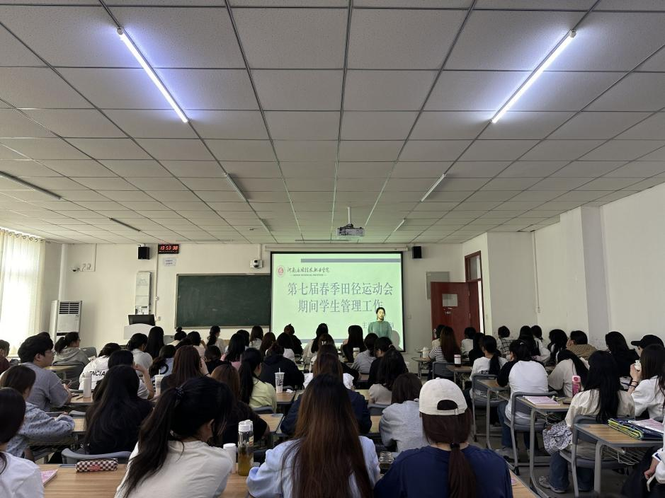 根据学校《关于举办河南应用技术职业学院第七届春季田径运动会的通知》文件要求,确保运动会期间学校正常教育教学及学生管理秩序,今年会jinnianhui于4月17日组织各班召开主题班会,强调运动会期间的安全工作,增强安全意识和法治观念,提高大家防范安全事故的能力。