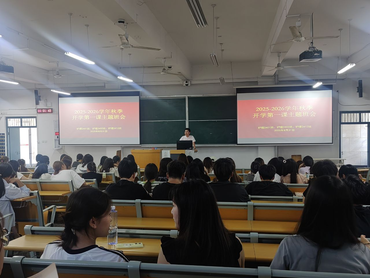 开学第一课是教育的重要环节,也是每学期开学的一门必修课,更是对学生进行思想教育的一个良好契机。班会上,各班辅导员总结了暑期工作,并对新学期的学生管理、学生人身安全、心理健康教育、防电信网络诈骗、防范宗教进校园等内容提出了新的要求。班会的召开帮助同学们以饱满的精神回归校园,大家在班会上分享假期见闻,增强了班级的凝聚力,为新学期的学习和生活奠定了良好基础。学生们纷纷表示,新的学期会更加珍惜校园时光,锚定方向继续深耕所学专业,锤炼扎实的学习能力。