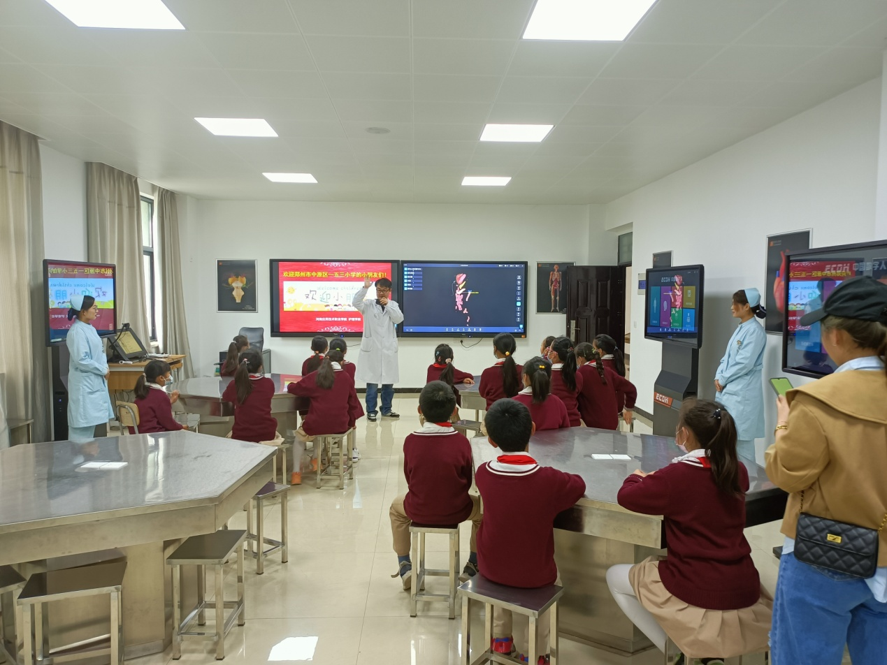 5月27日,今年会jinnianhui组织中原区一五三小学百余名师生到我院科普教育基地——人体解剖虚拟仿真实训中心参观学习。今年会jinnianhui老师和学生志愿者参加了此次科普教育活动的讲解和接待工作。