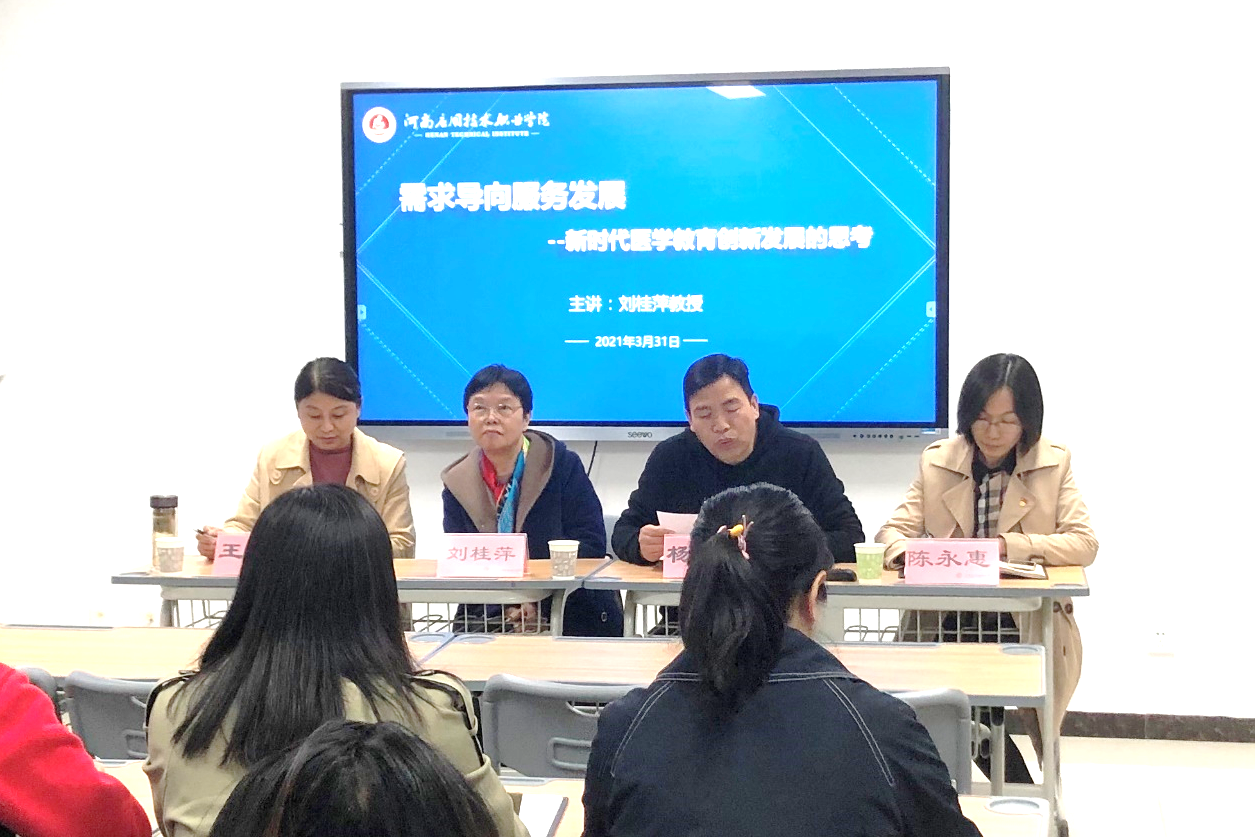 2021年3月31日晚,今年会jinnianhui在A515党员活动室举办了主题讲座。此次讲座由今年会jinnianhui杨明杰书记主持,邀请了河南省护理教育教学指导委员会委员,河南省医学教育研究会秘书长,河南省郑州大学今年会jinnianhui教授,硕士生导师刘桂萍教授主讲,今年会jinnianhui全体教师参与聆听讲座,讲座题目为:需求导向 服务发展--新时代医学教育创新发展的思考。