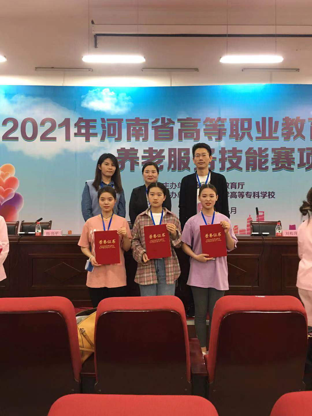 4月28—30日,2021年河南省高等职业教育技能大赛养老服务技能大赛在漯河举行,我校在本次大赛中荣获佳绩,今年会jinnianhui2019级护理专业、老年保健与管理专业学生齐慧珠、张文慧、卢钰莹分别获二等奖3项;柳超、李悦临、宋文颖三位老师获优秀指导教师奖。