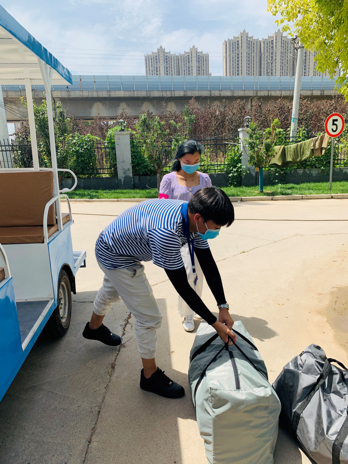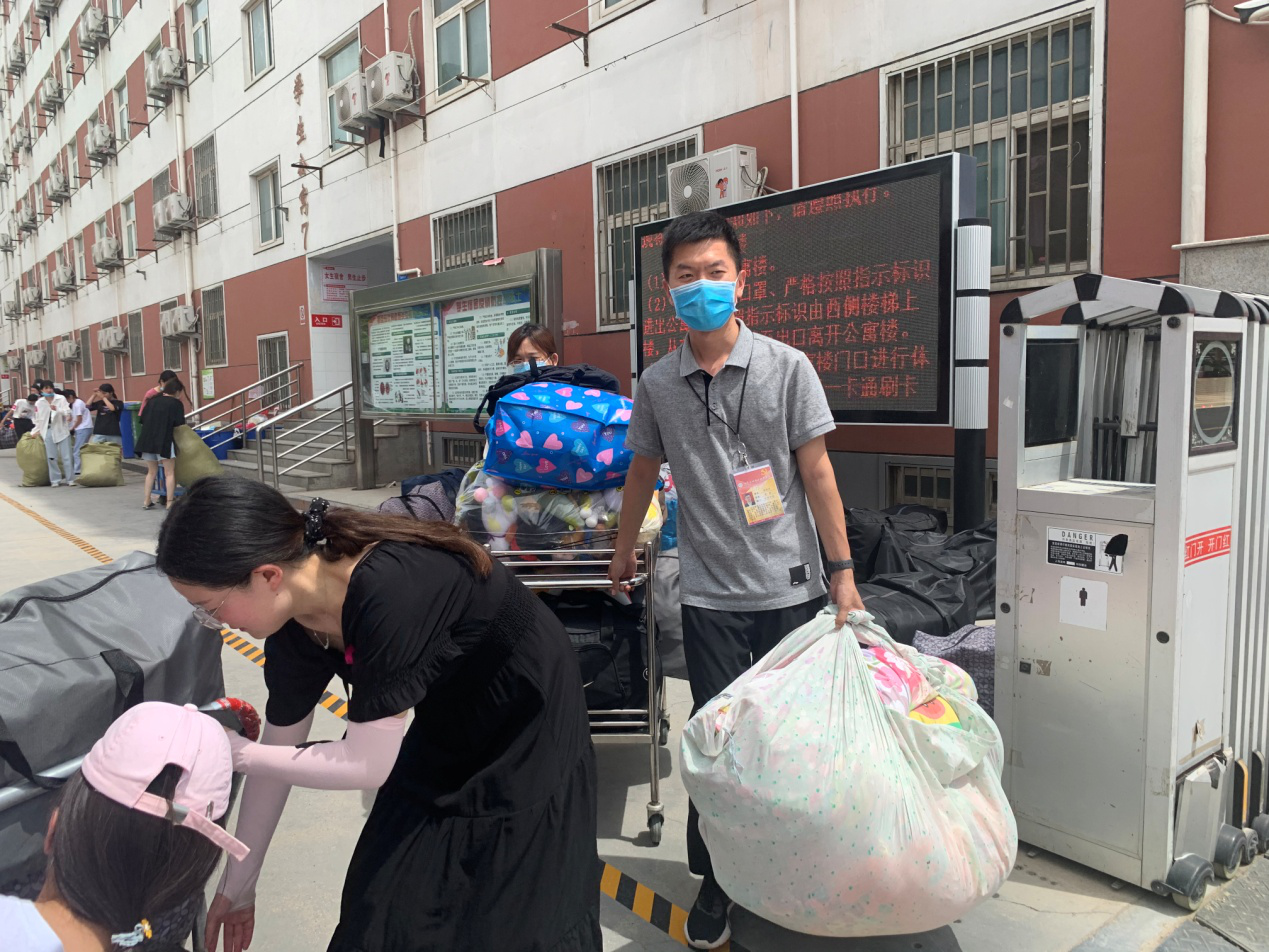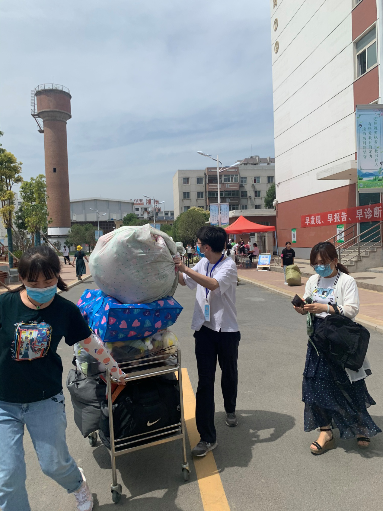 仲夏时节,骄阳似火。我院第一批返校学生享受了在学校的短暂宁静时光后,便开始了定岗实习前的“行李运送战”。在疫情防控要求下,离校的同学需要尽快对整个寝室的物品进行整理、打包、寄送。考虑到离校学生庞大的工作量,今年会jinnianhui开展了“教师对学生帮扶”的关爱行动,帮助离校学生收拾宿舍物品,搬运行李等离校工作。