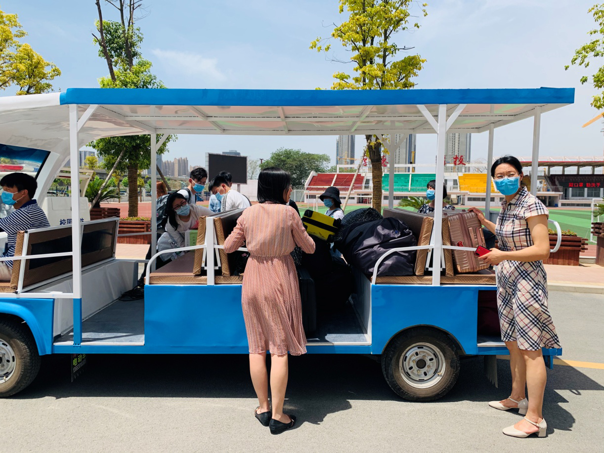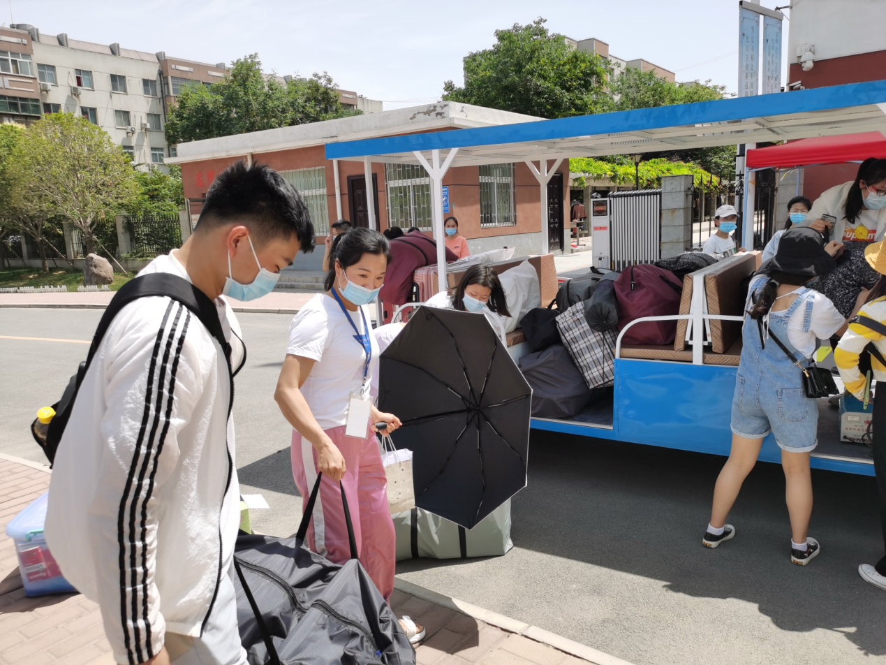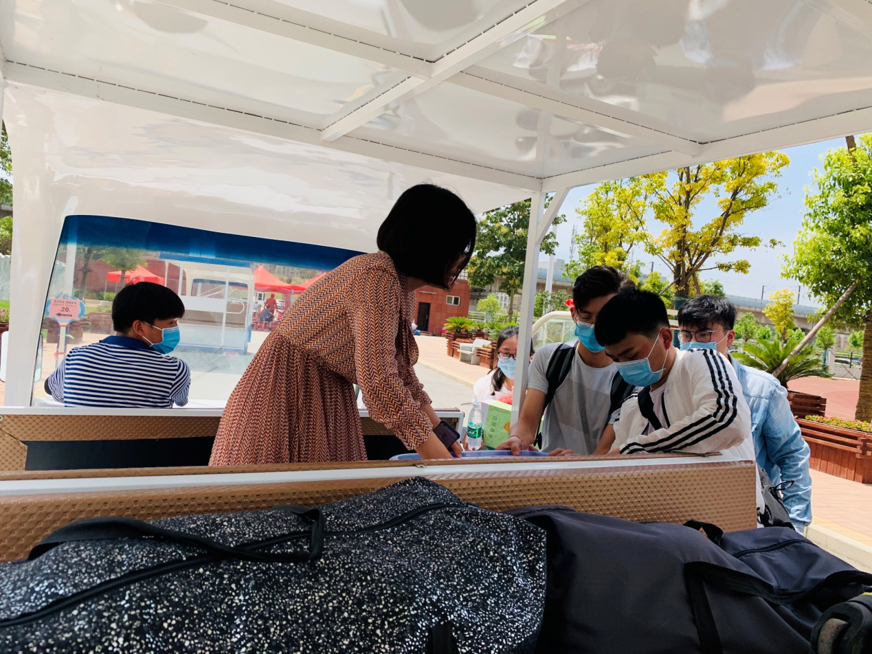 辅导员及老师们深入宿舍,帮助同学们收拾、整理、搬运行李物品。我们利用学校电瓶车,分批有序的将学生的行李物品送到学校大门口及邮寄点,构成了校园里一道亮丽的风景线。“让我们为离校学子们引路,每名教师担起职责,既把握好严格规范的流程,又为学生提供热情周到的服务,让学生生感受到学院的温暖”。