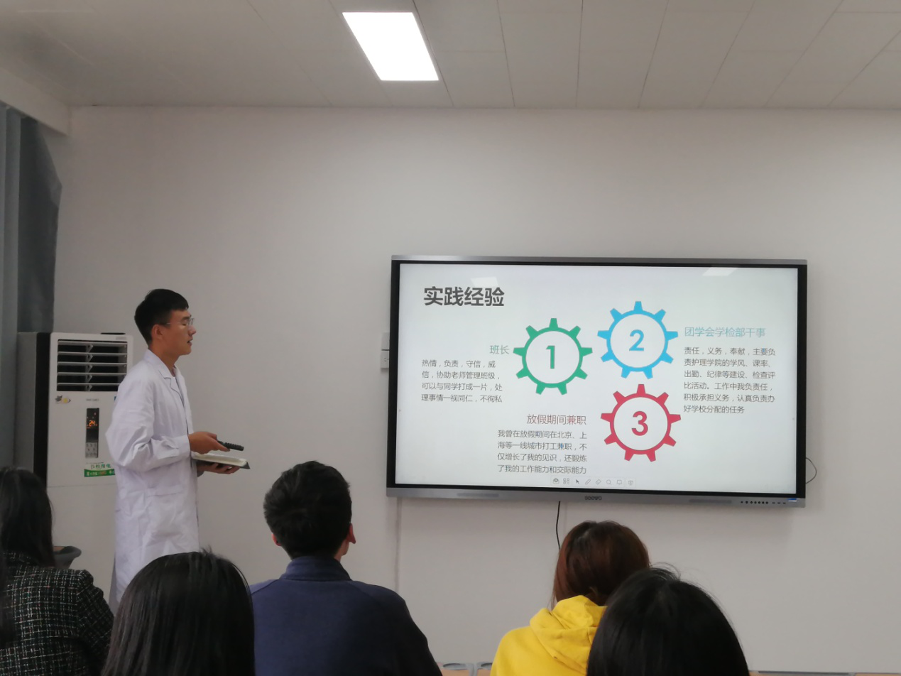 决赛通过抽签的方式决定各位选手的上场顺序,随后,主持人梁海洋老师宣布比赛开始。参赛选手用他们饱满的激情和精彩的ppt描绘着属于他们的未来蓝图。仅仅五分钟的演讲时间,选手们发挥得淋漓尽致。评委们也对每一位选手的演讲和规划书都做了细致入微的点评,不仅指出了选手存在的不足,也对选手在演讲过程中存在的问题提出了合理建议。