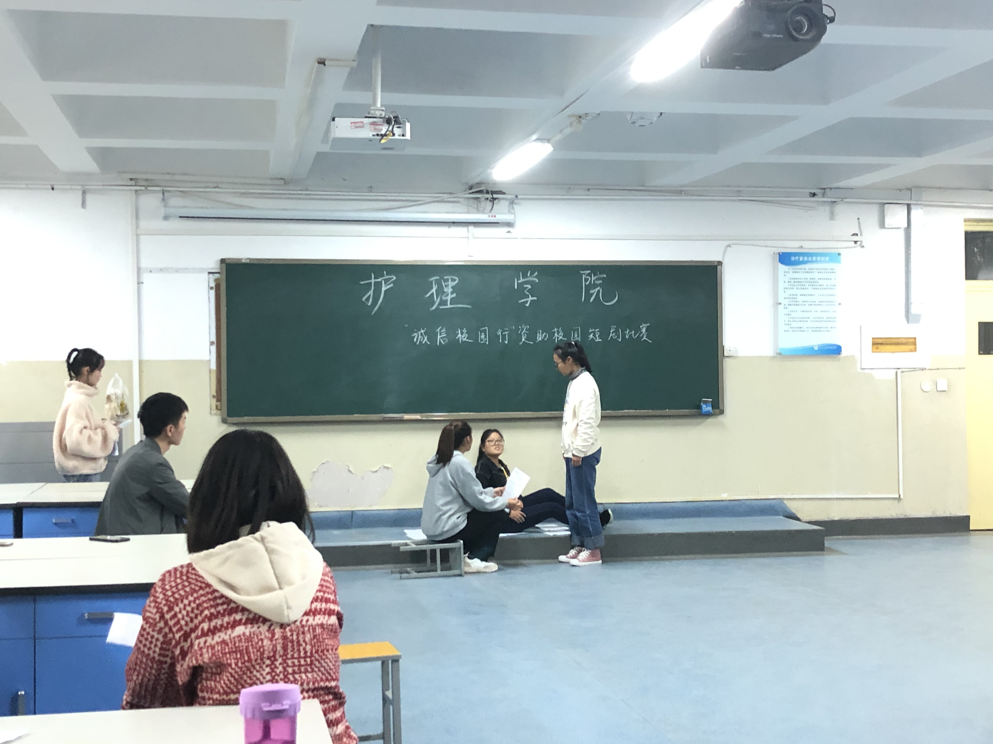 为提高我校大学生的诚信意识、加强资助政策宣传、普及征信知识,从而促进诚信校园建设,进一步推动学院学生资助工作健康开展,今年会jinnianhui在徐娟书记的组织领导下,于2019年11月13日下午在D207教室举行了“诚信校园行”资助校园短剧比赛。