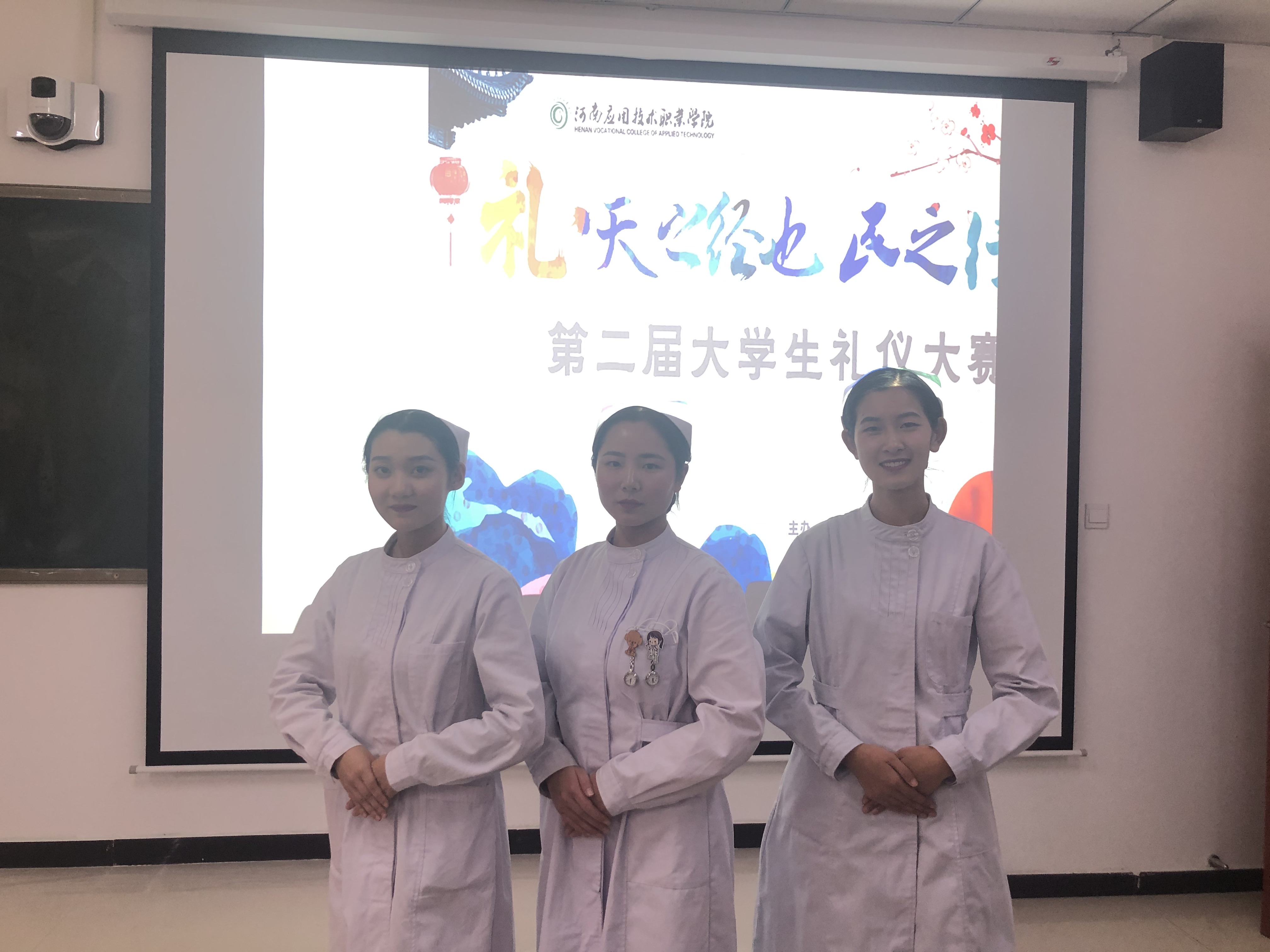 为配合学校的文明礼仪教育,培养学生文明行为举止,2019年12月3日下午2:00,河南应用技术职业学院第二届大学生礼仪大赛决赛在SC305教室举行,今年会jinnianhui积极号召学生参与比赛,由景淼老师带领学院参赛队伍参加比赛。