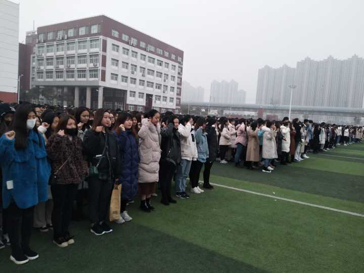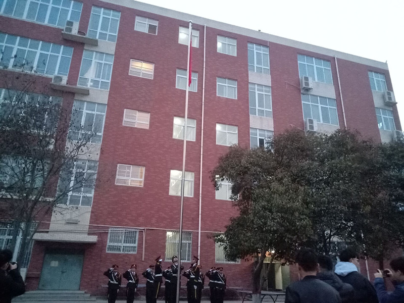 清晨6:30同学们便早早的站在了操场等待升旗,大家迅速整理好队伍,随后,团生会成员进入队伍中清点人数,维持会场纪律并让同学们保持现场卫生。当一轮朝阳升起,朝霞染红了天际。激昂雄壮的国歌在操场上飘扬了起来,在全场师生的瞩目下五星红旗冉冉飘起。在国旗升起后全体师生庄严肃穆的进行宣誓,为接下来的学习与生活加油打气。