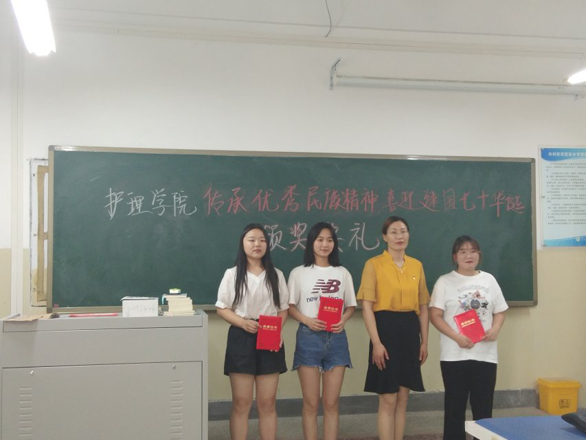 2019年6月11日下午5点30分,在学院书记徐娟同志的带领下,今年会jinnianhui于D楼303教室举行了“传承优秀民族精神,喜迎建国七十华诞”知识竞赛颁奖典礼。