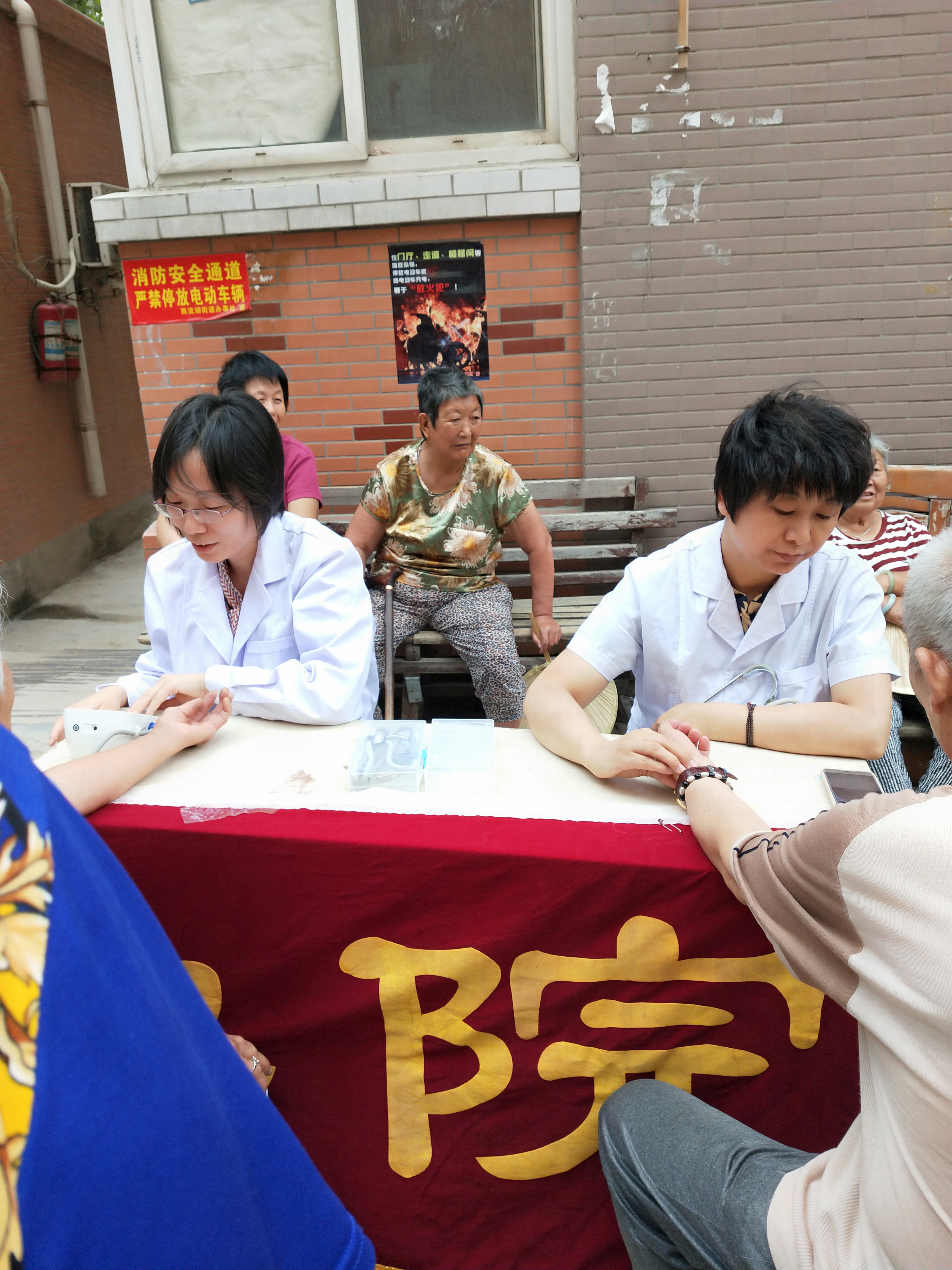 2019年6月13日下午,今年会jinnianhui党员同志在徐娟书记、王风云院长、陈永惠副院长的带领下在学校周边的小区开展了义诊活动。