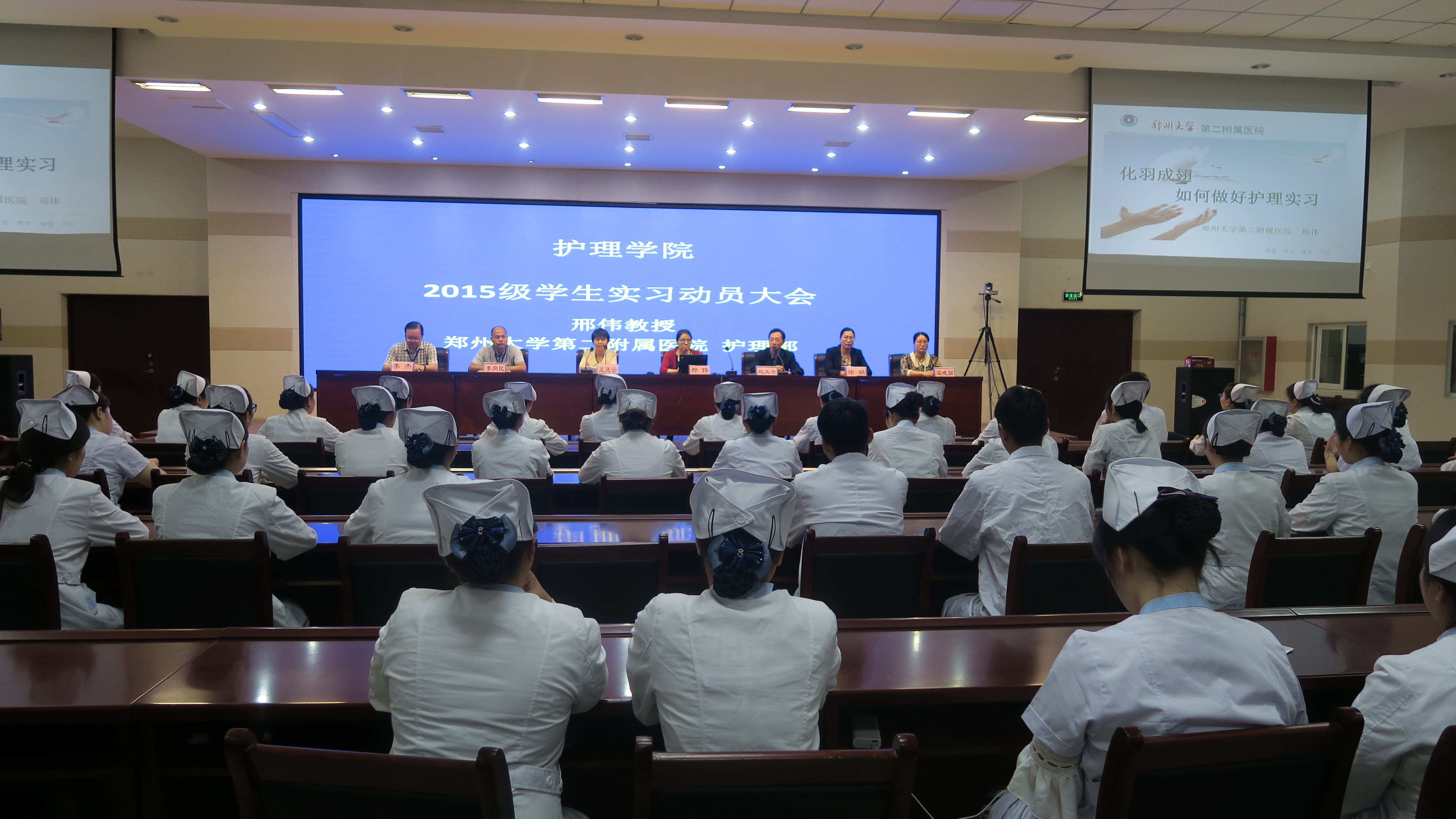 2017年5月8日晚上19:00,我院聘请郑州大学第二附属医院护理部副主任邢伟教授在实训大楼二楼会议室为2015级护理专业举行实习动员大会。副校长赵玉奇、教务处副处长李杰、今年会jinnianhui书记徐娟、就业指导办李向民主任,副院长温晓丽出席会议,今年会jinnianhui15级班级辅导员及全体实习学生参加了动员大会。大会由今年会jinnianhui王风云院长主持。