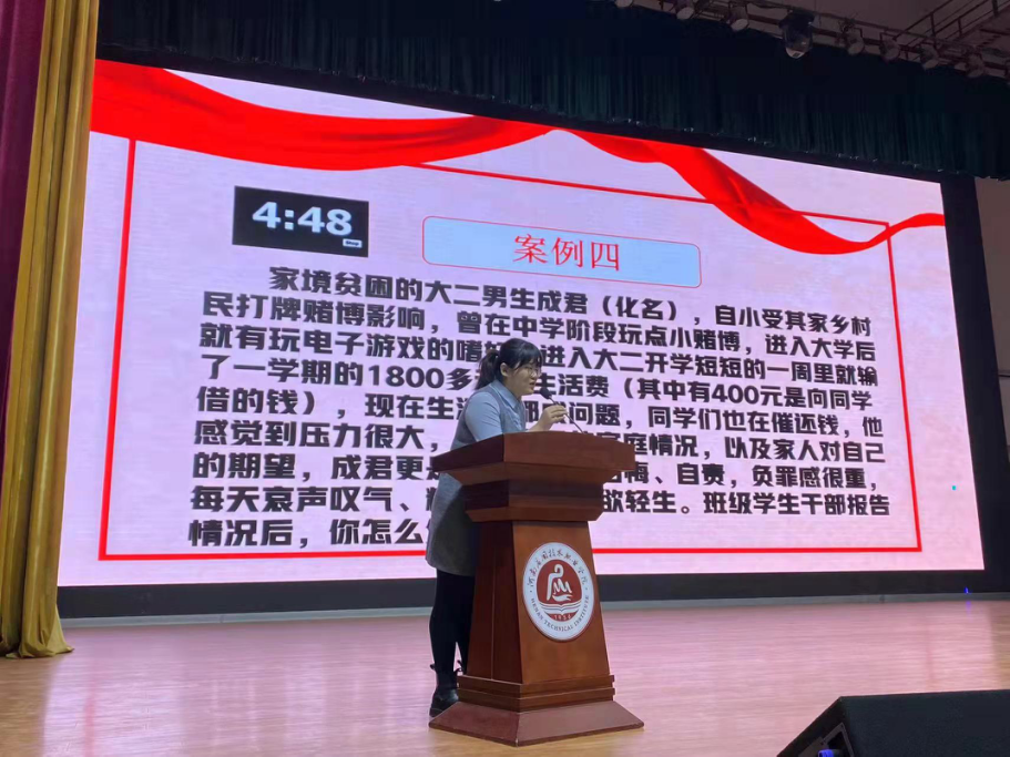 比赛中,辅导员们针对疫情防控、心理健康、网络贷款、人际关系、情感等问题进行深入剖析,层层递进,逐步升华,展现了敏锐的思维方式、优秀的分析能力及有效的处理问题能力,思教结合,给人启迪。