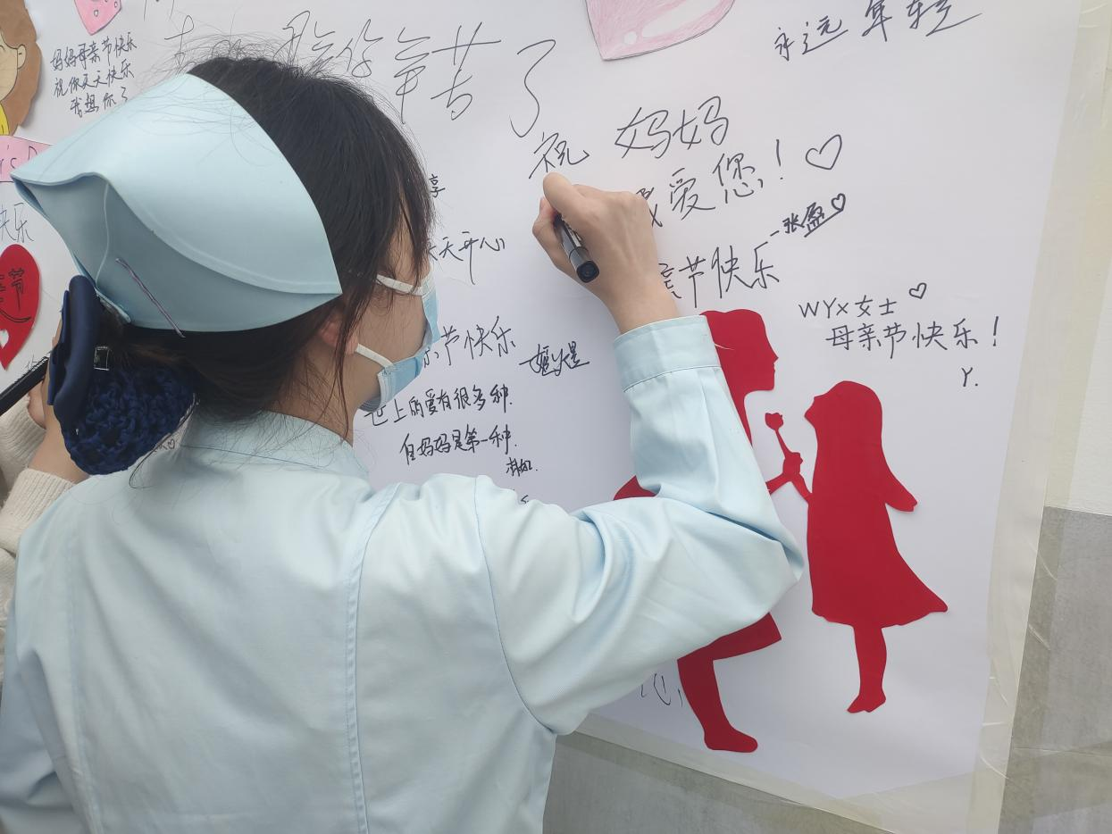 海报墙吸引了学生们驻足留意,在经过活动人员的详细解说后,同学们反响热烈,积极参与进来,纷纷走向海报墙,写下各自对母亲的节日祝福和想对妈妈说的话。片刻海报墙上便密密麻麻的写满了:“祝天下母亲天天开心,身体健康!”“祝母亲永远年轻漂亮!”等祝福语。
