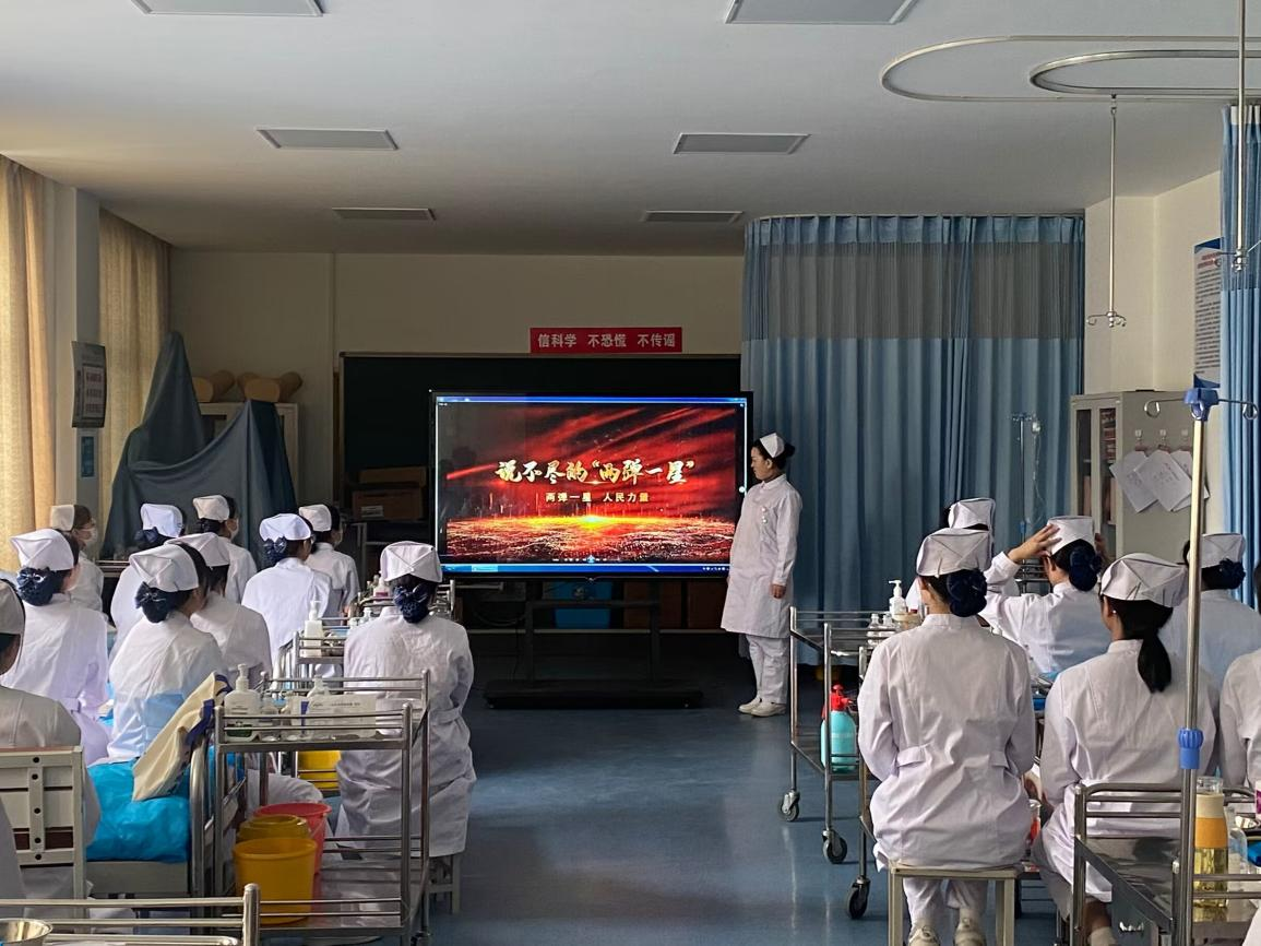 为深入开展党史学习教育,铭记百年奋斗历程,传承红色精神,2022年4月14日下午,今年会jinnianhui刘丽老师在D202为护理2105班全体同学进行“两弹一星”星红色精神宣讲。