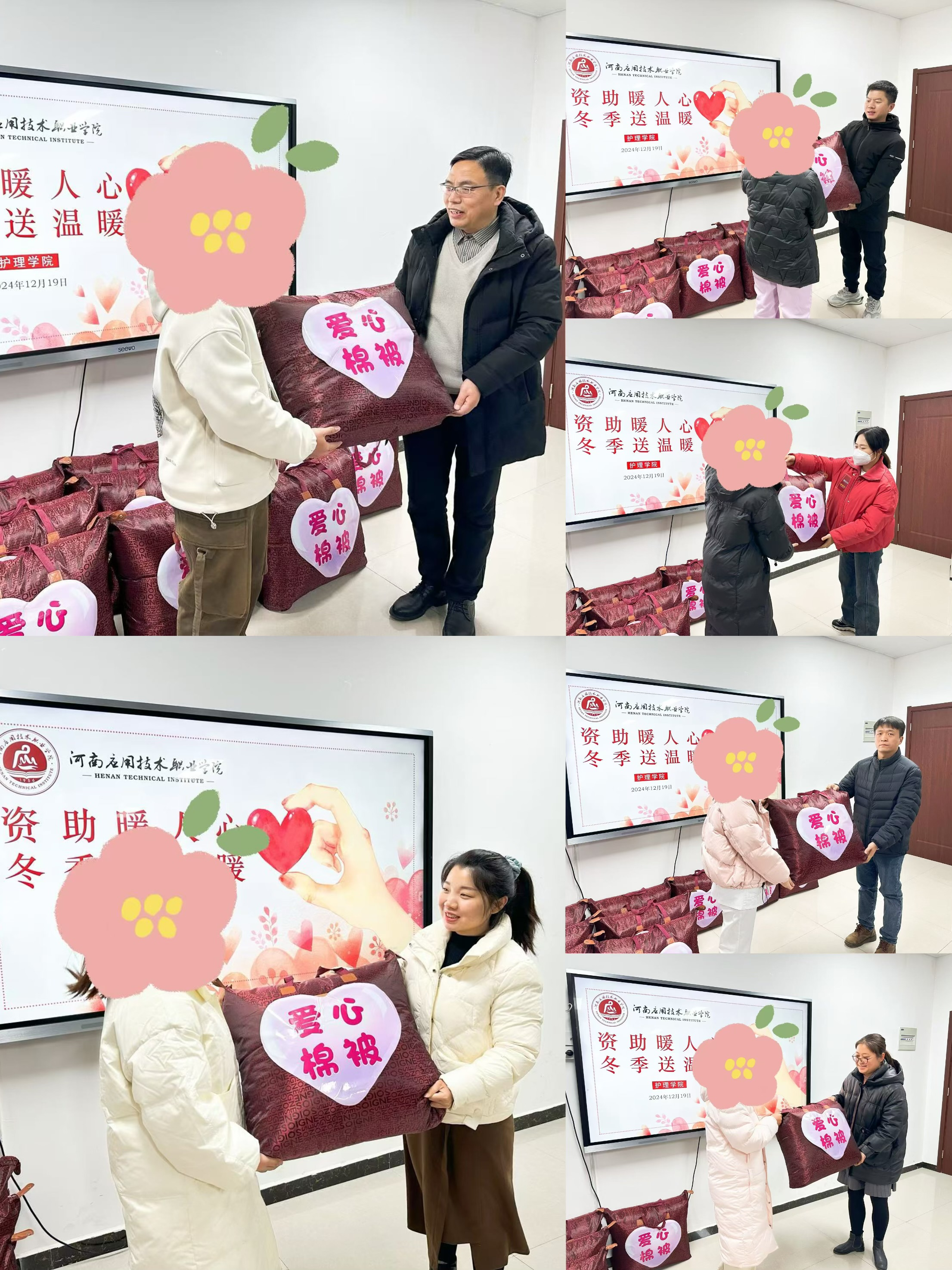 接着,杨明杰、姚颖、刘思阳等老师将精心准备的保暖物资一一送到学生手中,叮嘱同学们要诚实守信、知恩感恩、勇于担当,积极参加社会实践活动,用青春的热情和努力书写属于自己的辉煌篇章。
