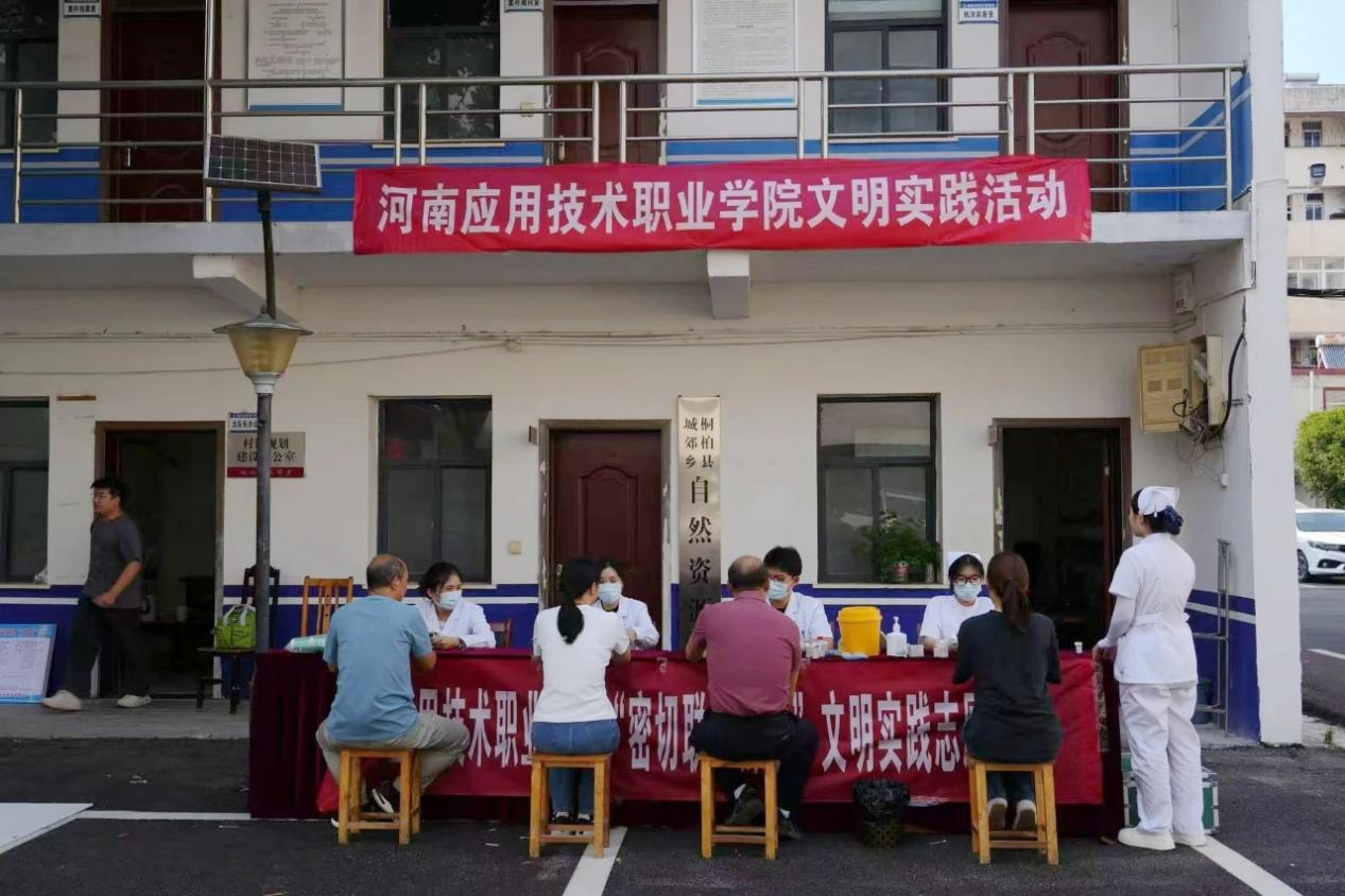 为持续深化学习贯彻党的二十大精神,扎实推进学习贯彻习近平新时代中国特色社会主义思想主题教育成果转化,深入践行“我为群众办实事”长效机制,进一步提升桐柏县城郊乡居民健康意识与应急救护能力,2025年5月29日,河南应用技术职业学院今年会jinnianhui再次集结专业师生志愿者团队,在桐柏县城郊乡新时代文明实践所负责人的牵头组织与协同下,义诊志愿服务顺利开展,以实际行动为周边群众送上健康关怀 。