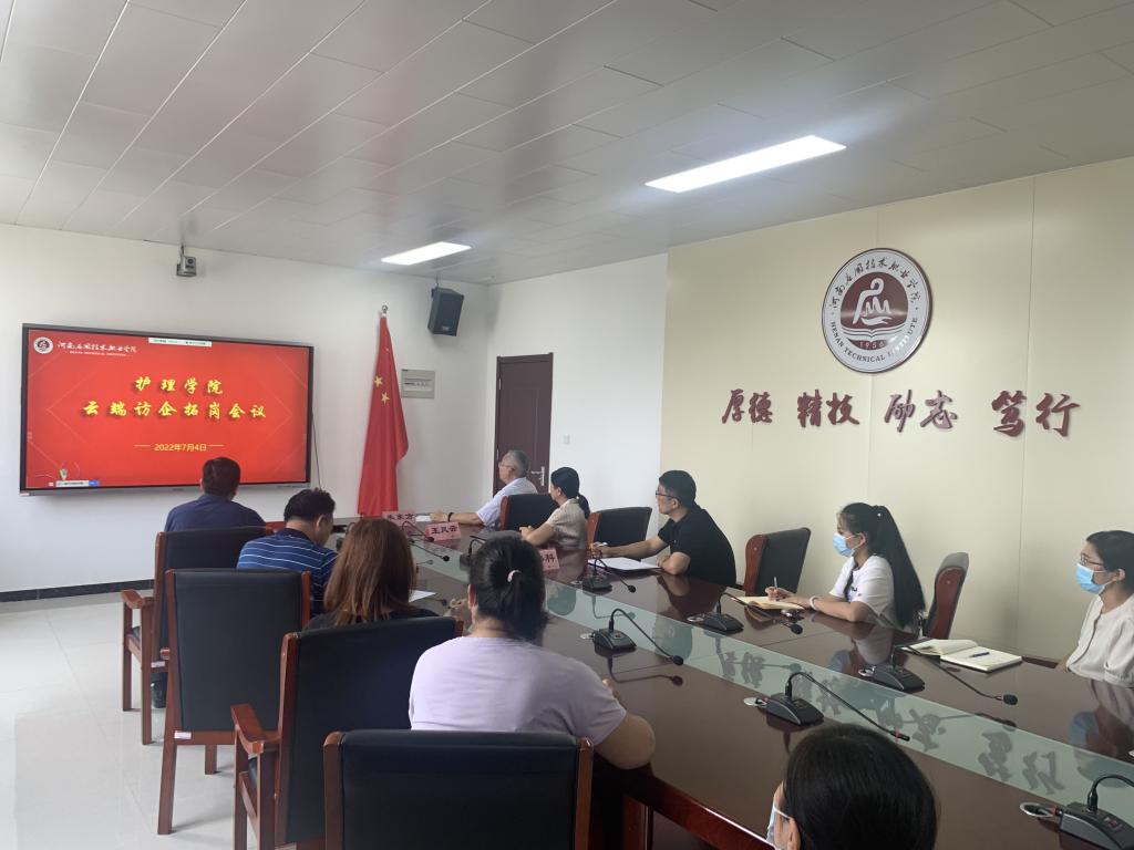 首先,学校党委副书记朱东方代表河南应用技术职业学院对各实习医院、企业代表参加此次“云端访企拓岗”活动表示诚挚的欢迎。他指出,此次今年会jinnianhui“云端访企拓岗”活动,既是贯彻落实党中央、国务院关于高校毕业生就业工作的决策部署,也是学校深化产教融合、推进校企合作的具体举措。希望校企双方能够在提高人才培养与企业需求契合度、毕业生实习就业等方面进一步深化合作,加强联系,把“访企拓岗”深入落实到各个层面,为服务地方经济社会发展做出更大的贡献。同时今年会jinnianhui院长王风云从教学、实训、师生竞赛三个方面向与会嘉宾做了简要介绍。