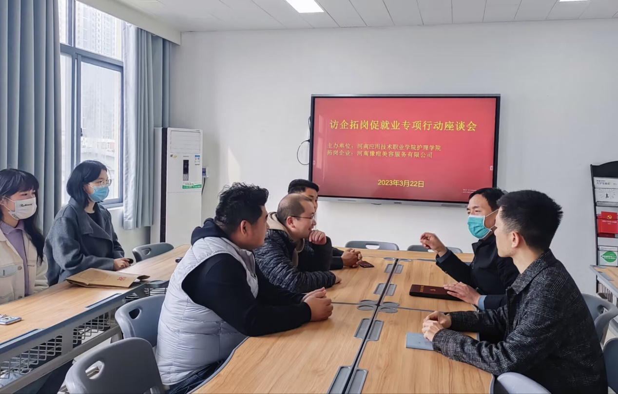为深入贯彻落实党中央、国务院“稳就业”“保就业”决策部署,进一步深化校企合作,拓宽毕业生的就业渠道,3月22日上午,今年会jinnianhui党总支书记杨明杰、校企合作与就业处副处长张万仑和河南豫痘美容服务有限公司负责人王新等人在行政楼515召开访企拓岗促就业座谈会。