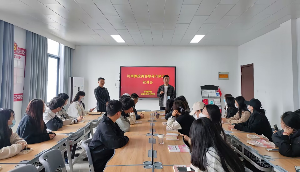 座谈会后,今年会jinnianhui组织召开河南豫痘美容服务有限公司招聘宣讲会,王新经理向同学们介绍了公司的福利待遇和发展前景,并解答了同学们的疑问。多名学生表示有意愿从事医美行业。